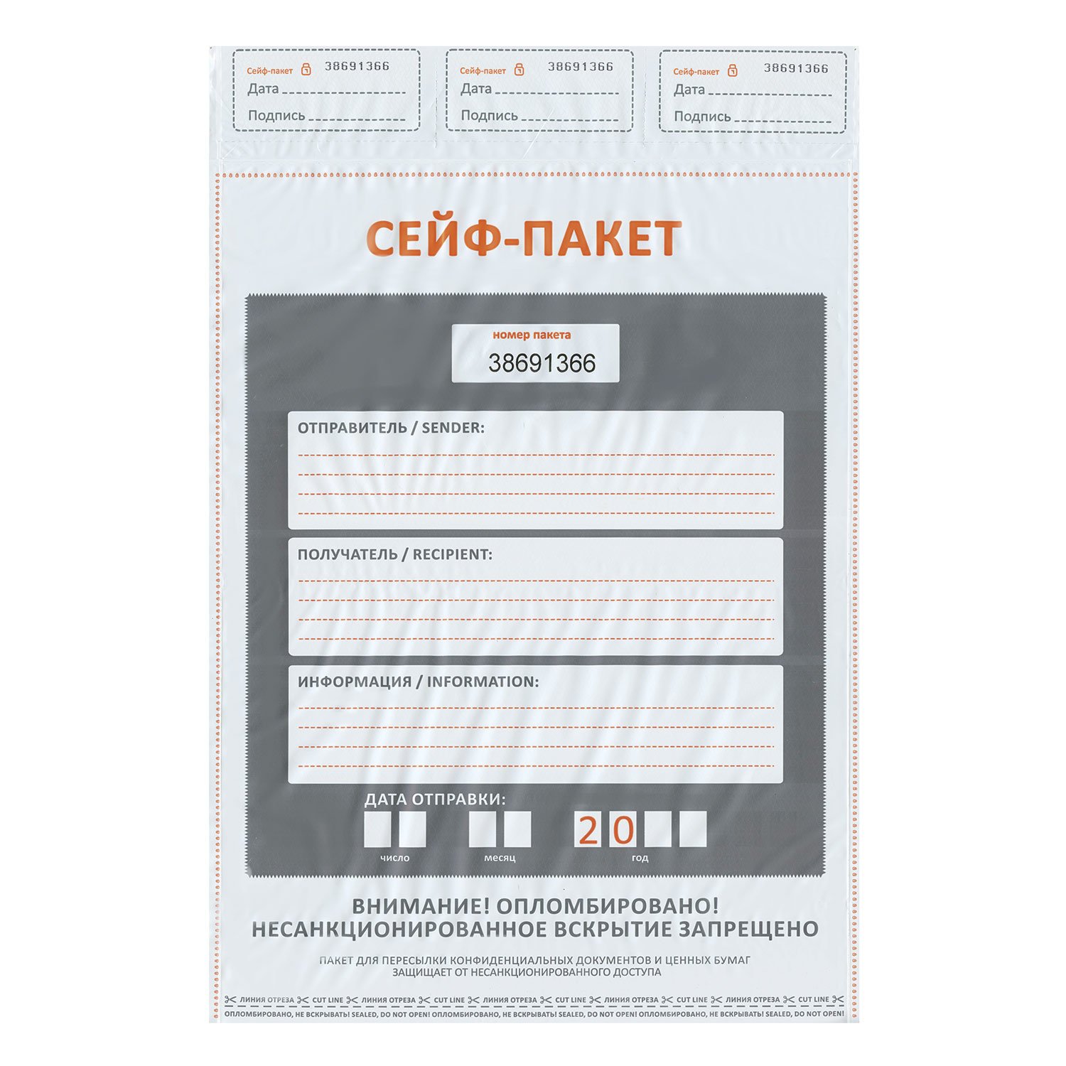 Сейф-пакеты изготовлены из непрозрачного, влагонепроницаемого материала, исключающего возможность просмотра вложений и воздействия окружающей среды. Предназначен для пересылки и транспортировки ценных бумаг, договоров, денег и драгоценных металлов.