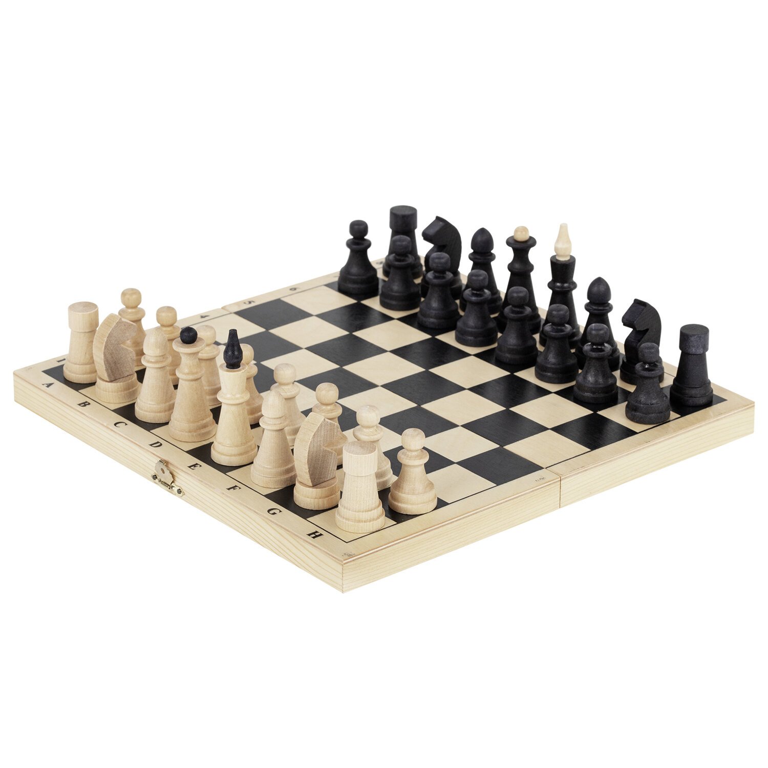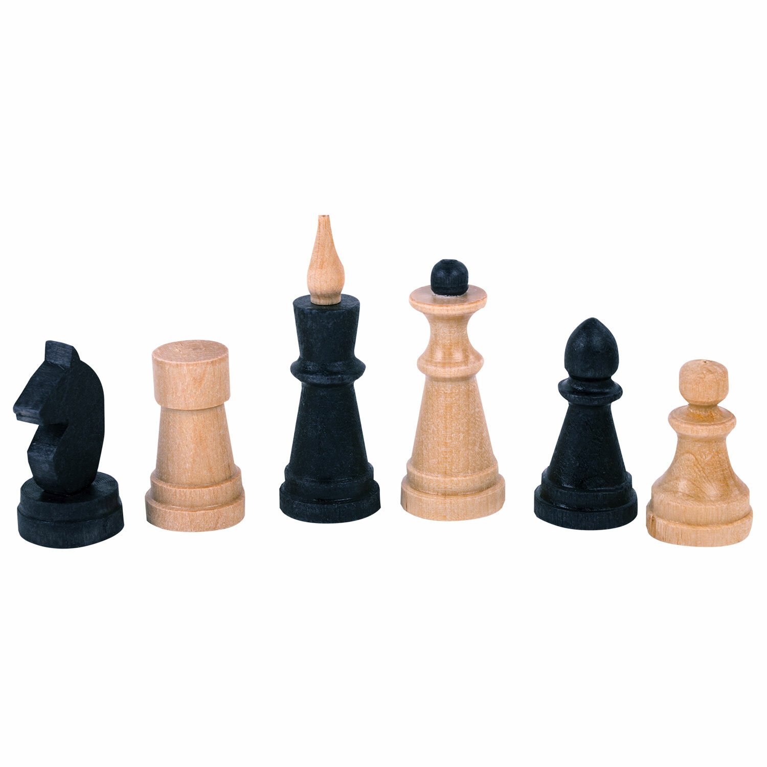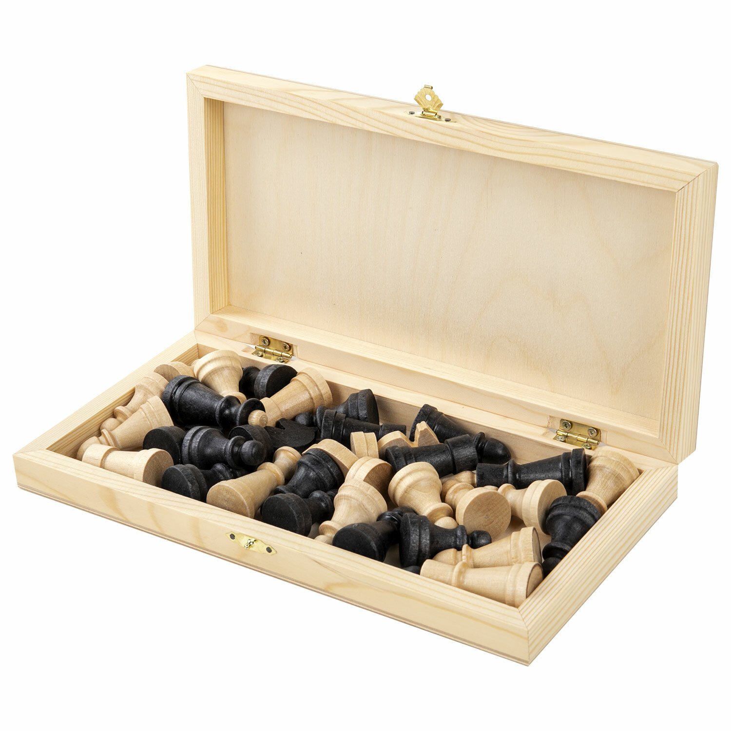 • Шахматные фигуры из хвойных и лиственных пород дерева (32 штуки), 16 светлых и 16 темных, защитное лаковое покрытие.