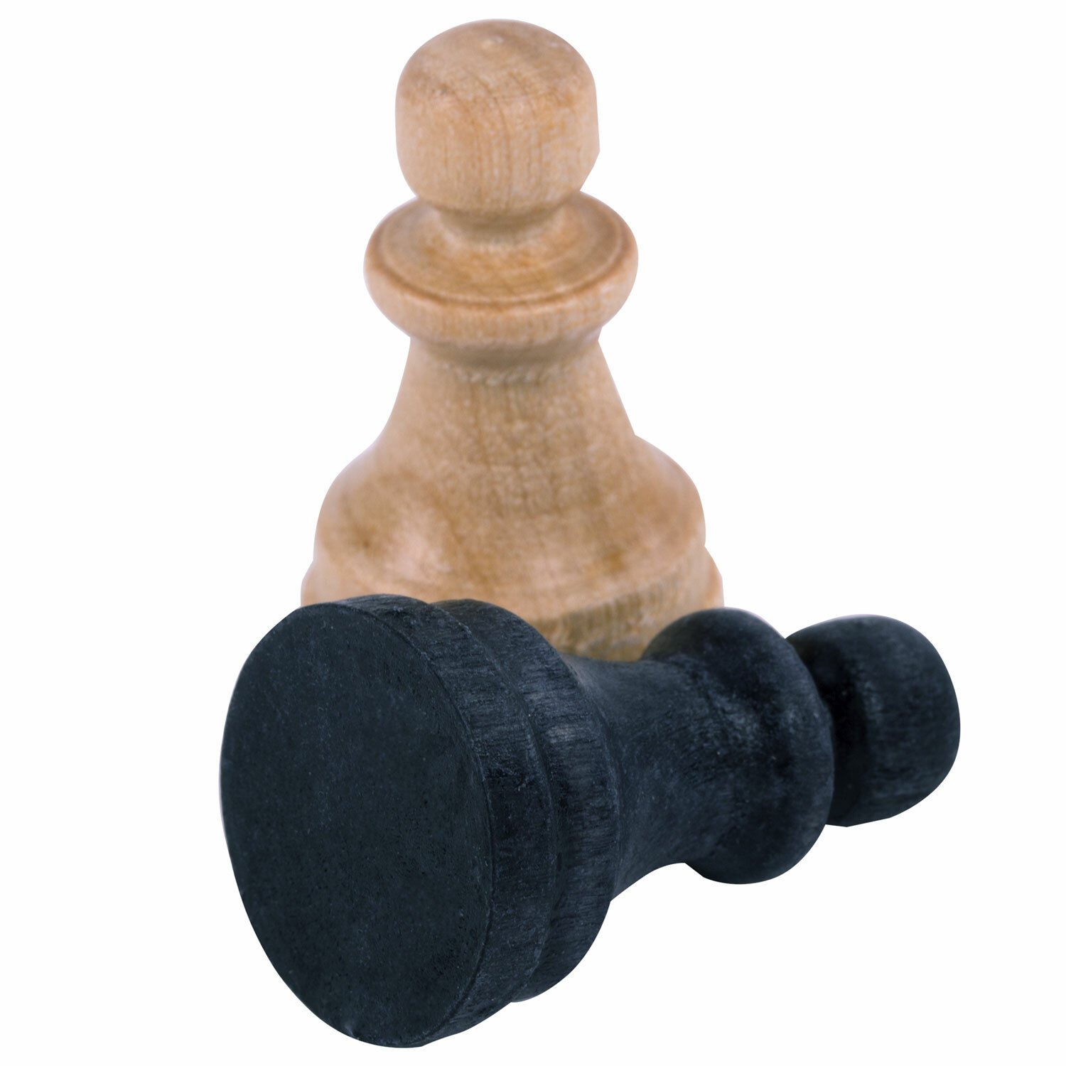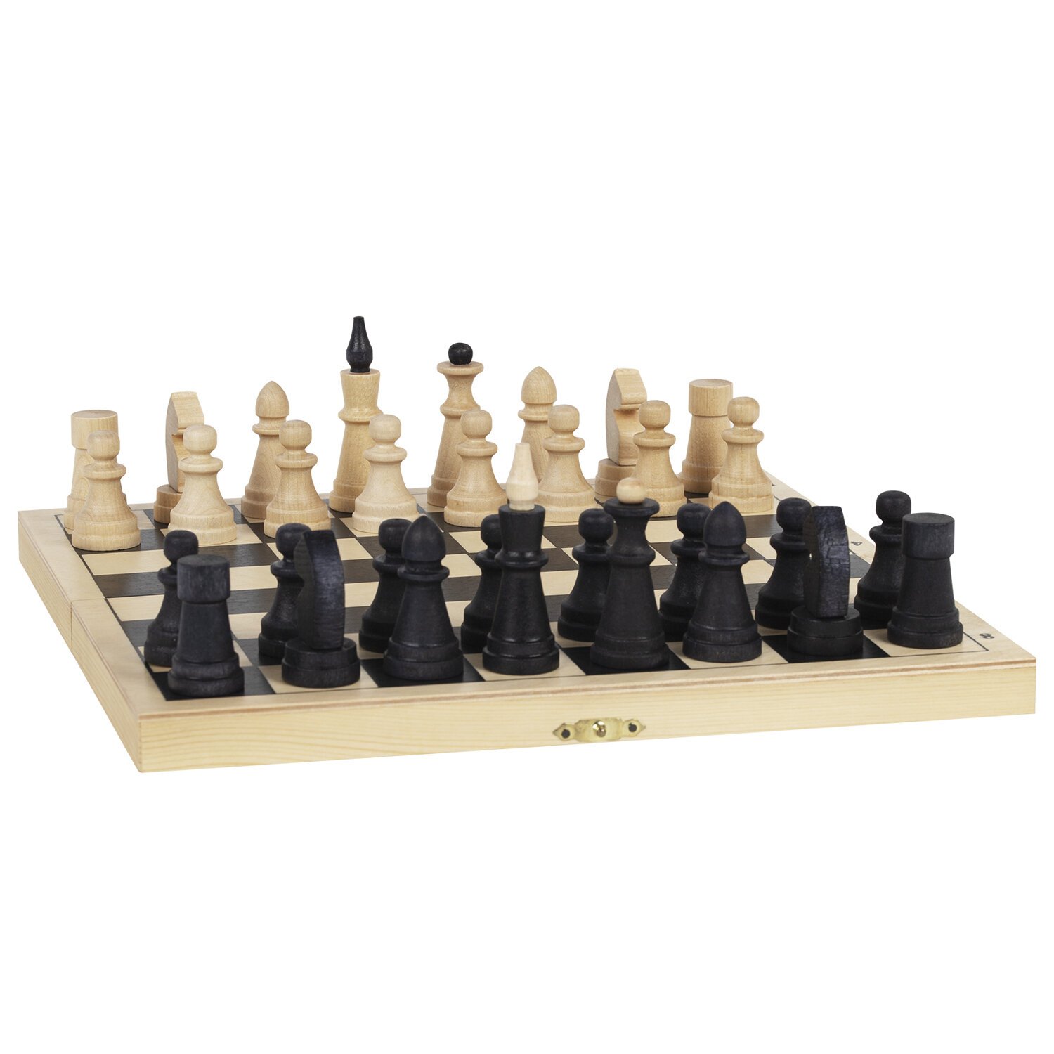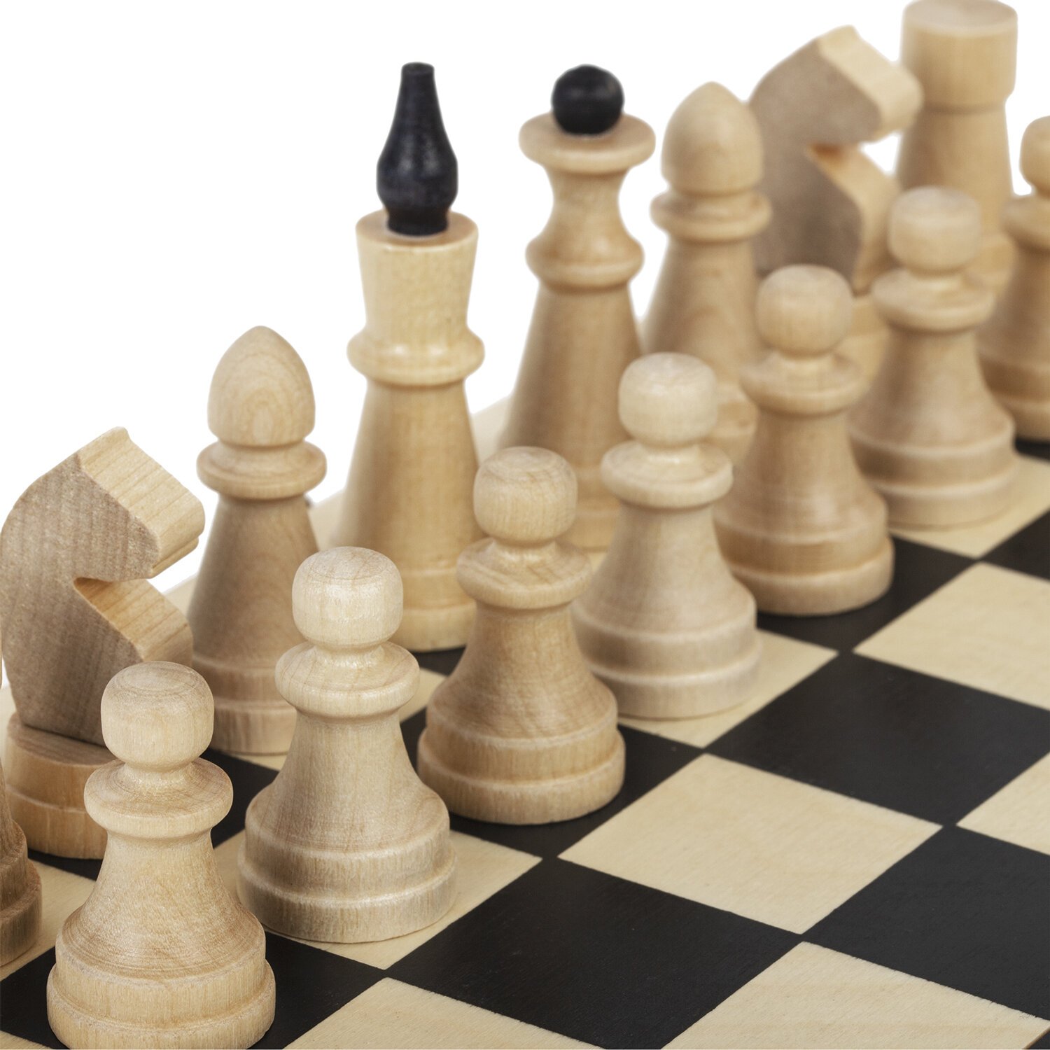 • Шахматные фигуры из хвойных и лиственных пород дерева (32 штуки), 16 светлых и 16 темных, защитное лаковое покрытие.