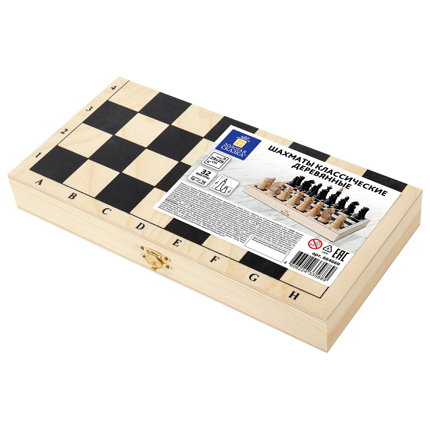 Шахматы классические обиходные, деревянные, лакированные, доска 29х29 см, ЗОЛОТАЯ СКАЗКА, 664669