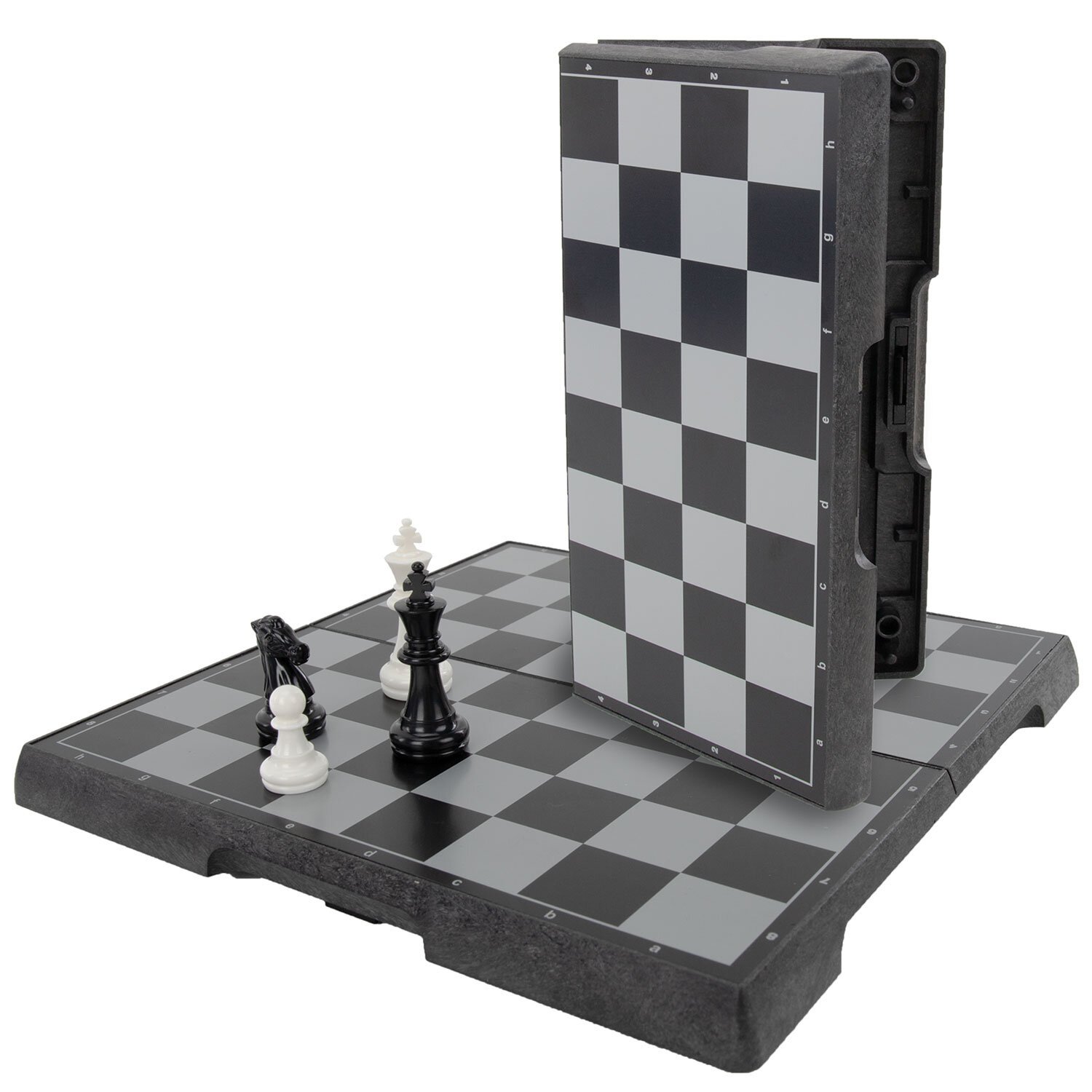Шахматы магнитные имеют удобный размер: доска 25х25см достаточно компактна и легко поместится в сумку или рюкзак. Фигуры изготовлены из прочного пластика с магнитными основаниями, что делает их лёгкими, долговечными и устойчивыми на поле. Доска выполнена из качественного пластика и имеет складную конструкцию, внутри которой предусмотрено место для хранения фигур. Защёлка предотвращает случайное открытие доски.