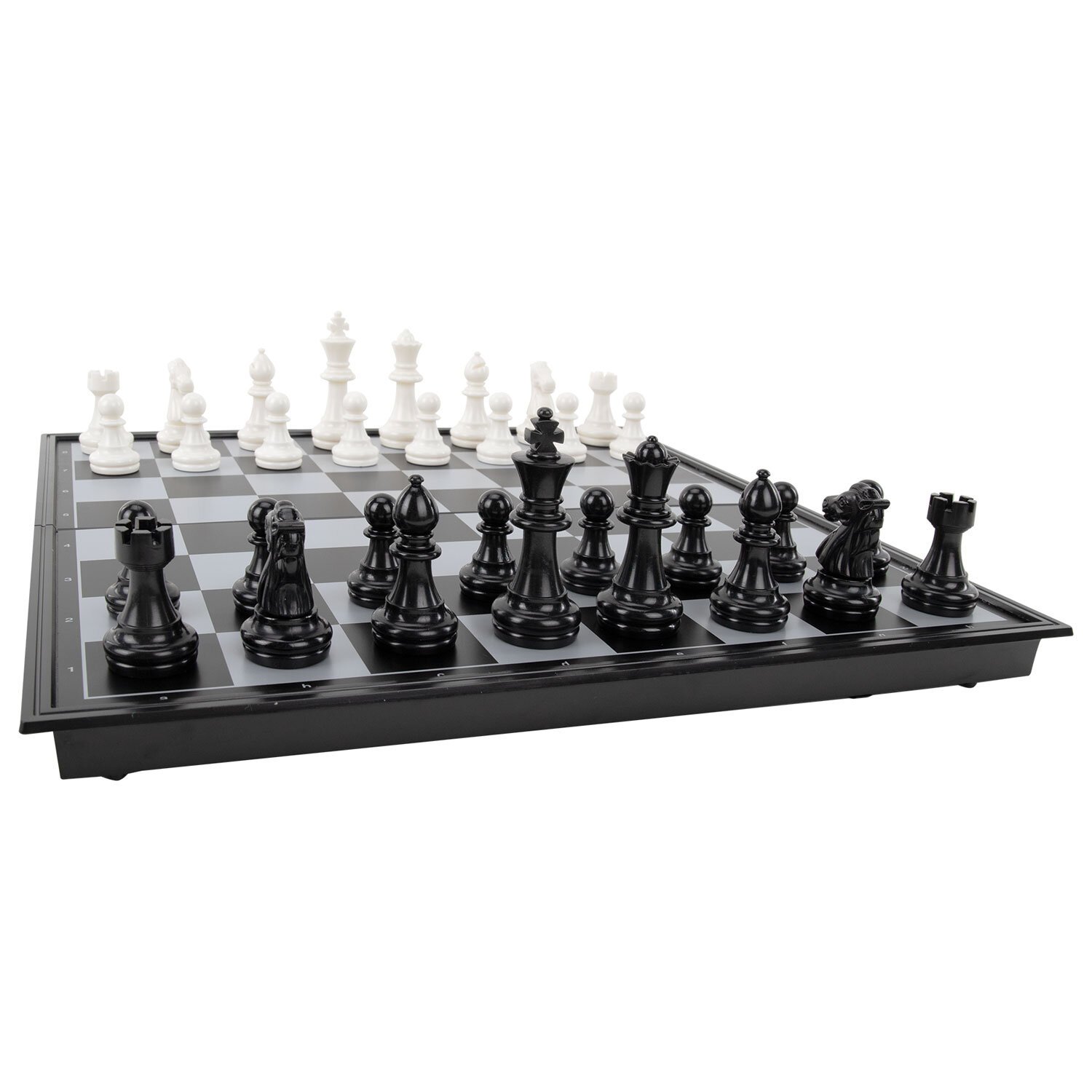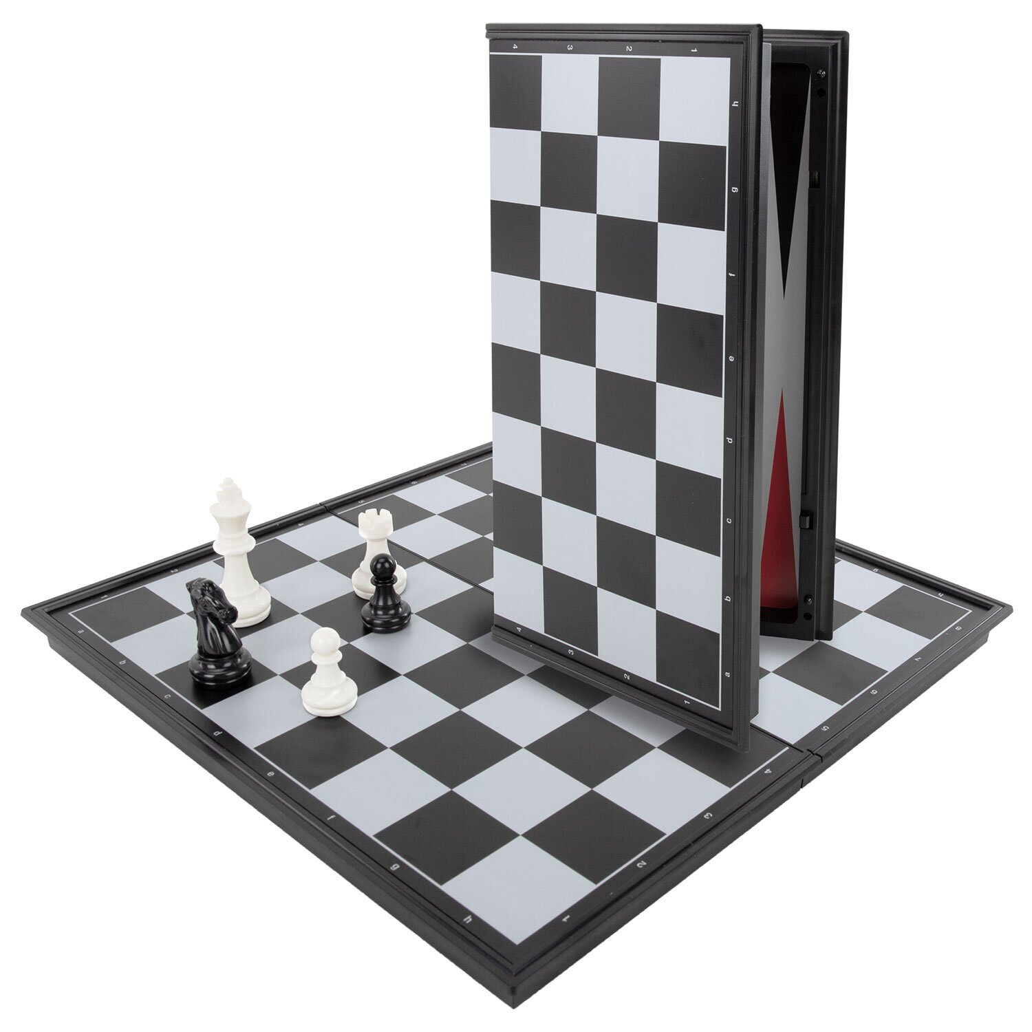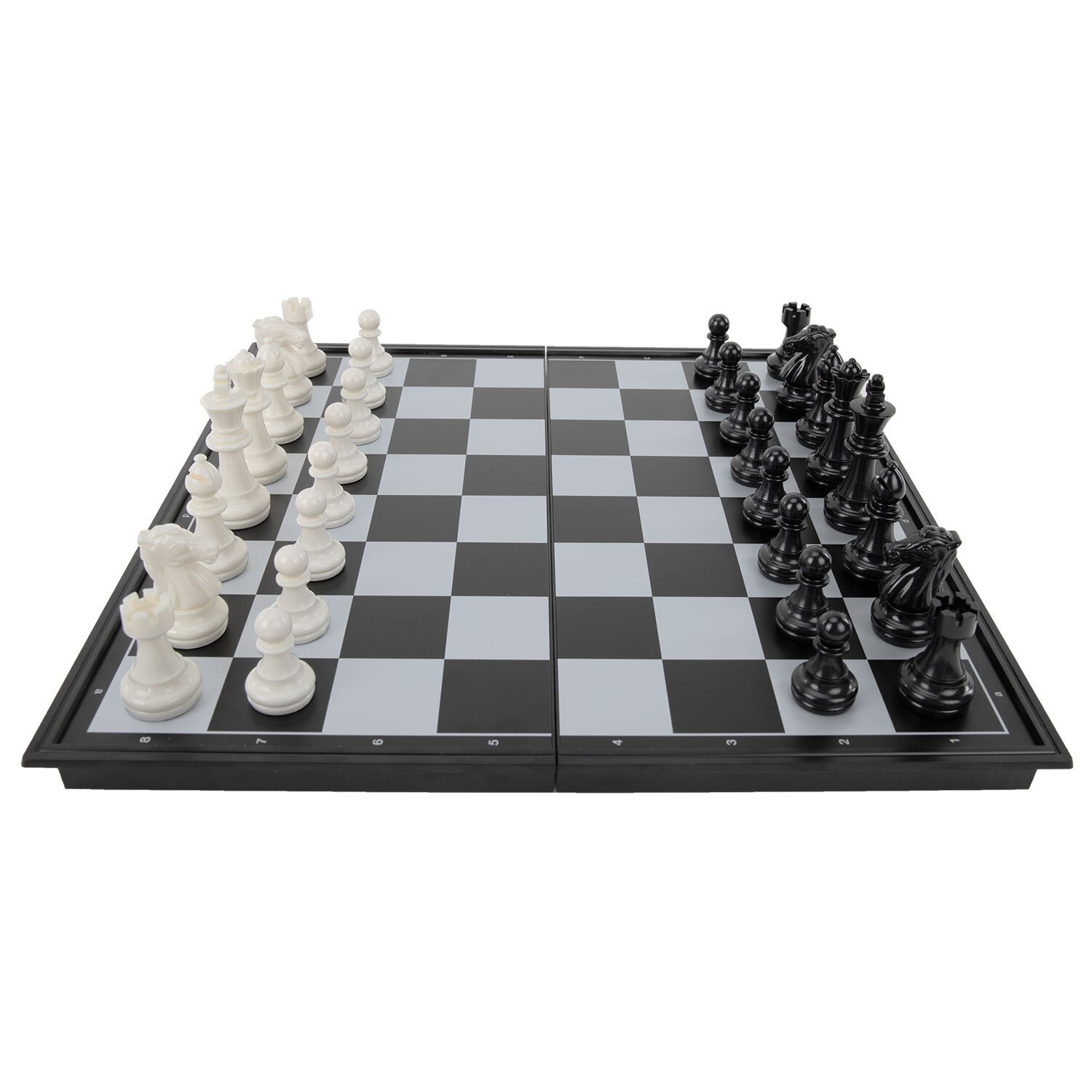 Размер доски 25х25 см. Фигуры изготовлены из прочного пластика с магнитными основаниями, что делает их лёгкими, долговечными и устойчивыми на поле. Доска выполнена из качественного пластика и имеет складную конструкцию, внутри которой предусмотрено место для хранения фигур. Защёлка предотвращает случайное открытие доски.