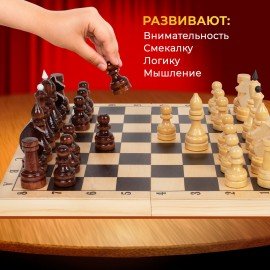 Шахматы турнирные деревянные ЗОЛОТАЯ СКАЗКА развивают внимательность, мышление, смекалку и мелкую моторику рук, а также помогают с интересом провести время. Идеальный набор для интеллектуального времяпрепровождения.