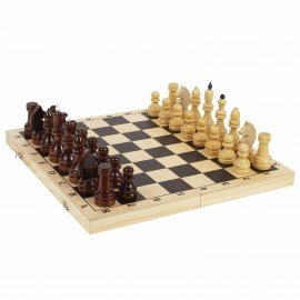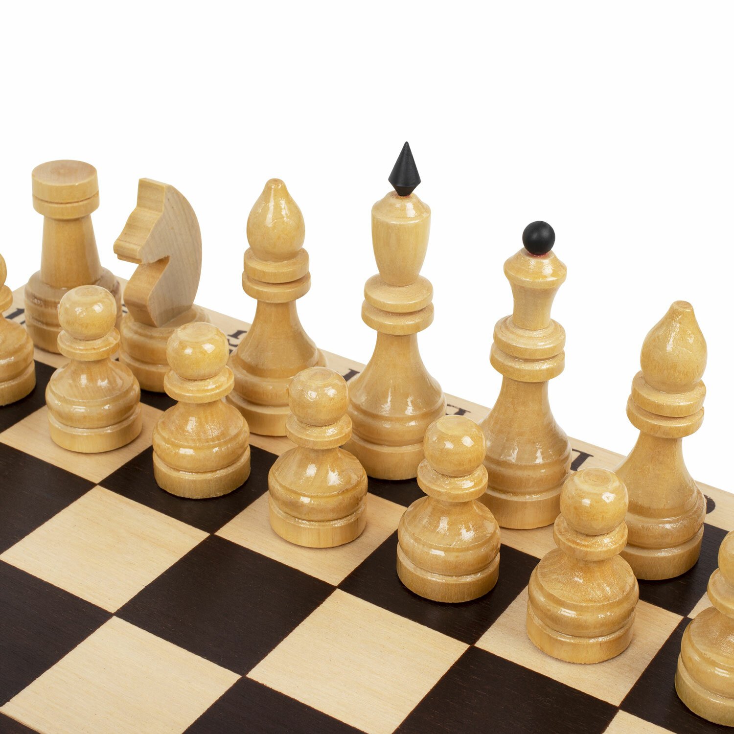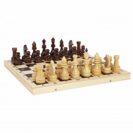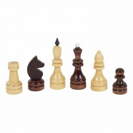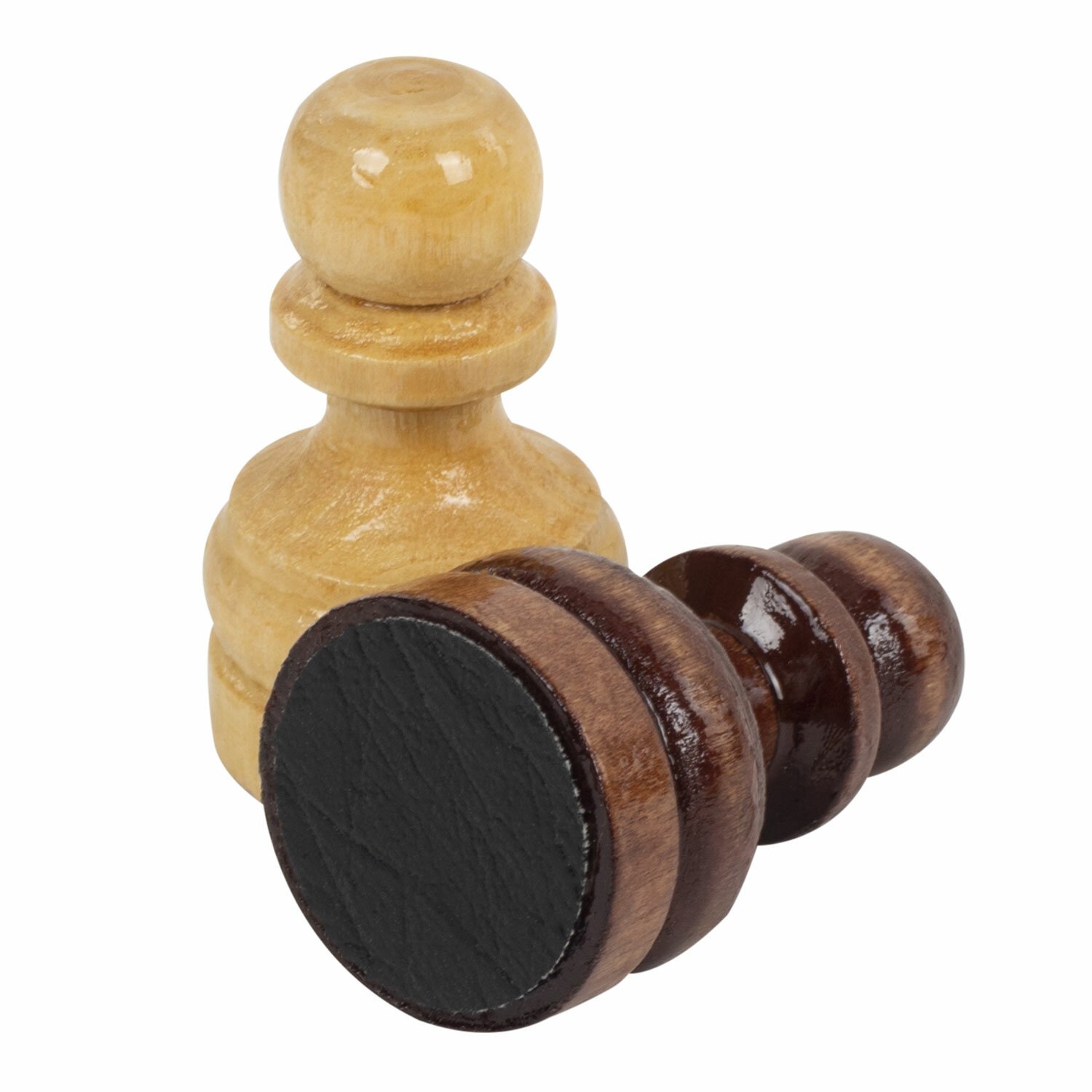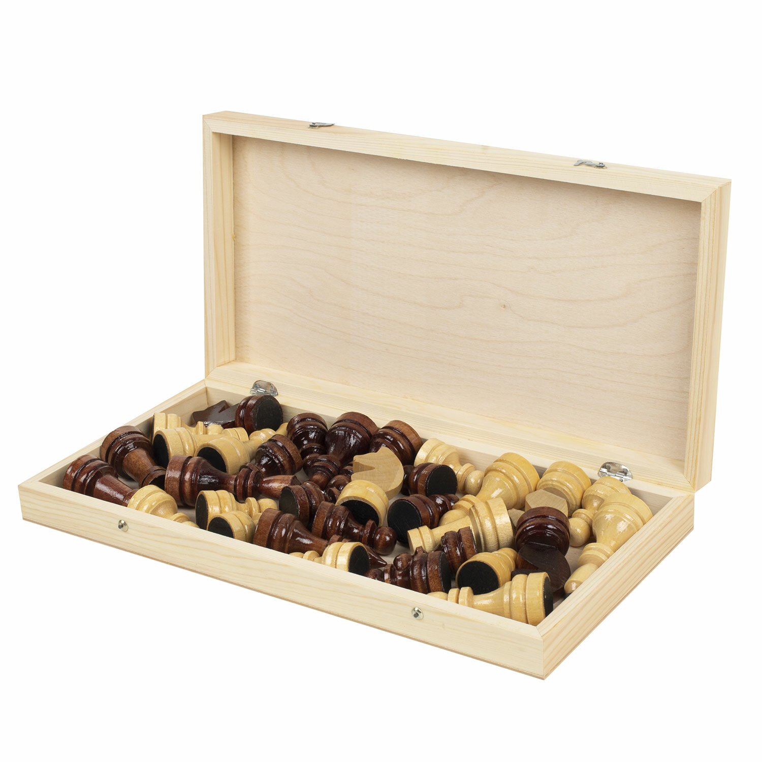 • Шахматные фигуры из хвойных и лиственных пород дерева (32 штуки): 16 светлых и 16 темных, с защитным лаковым покрытием.