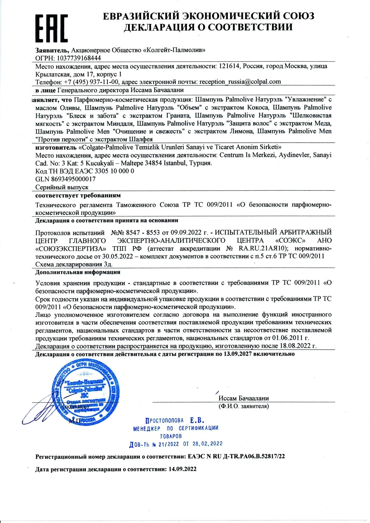 Шампунь для всех типов волос 450 мл PALMOLIVE НАТУРЭЛЬ "Гранат", блеск и забота, 8718951556324