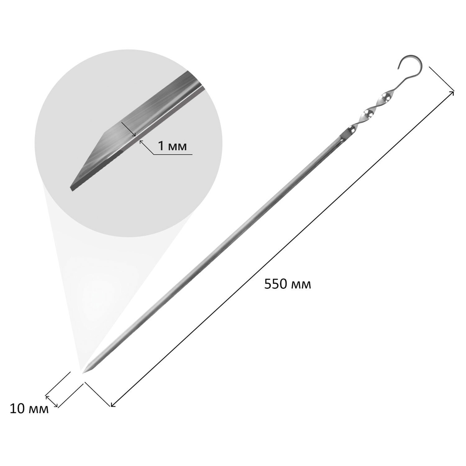 Шампур угловой, размер 550х10х1 мм, нержавеющая сталь, хххххх, 701734