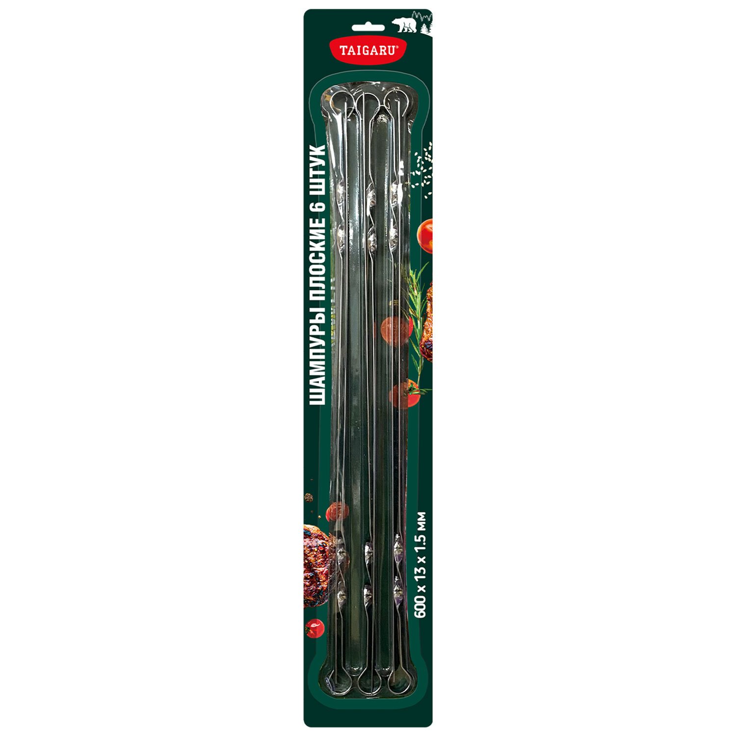 Шампуры плоские 600х10х1,5мм, НАБОР 6шт., хромированная сталь, TAIGARU, 702559