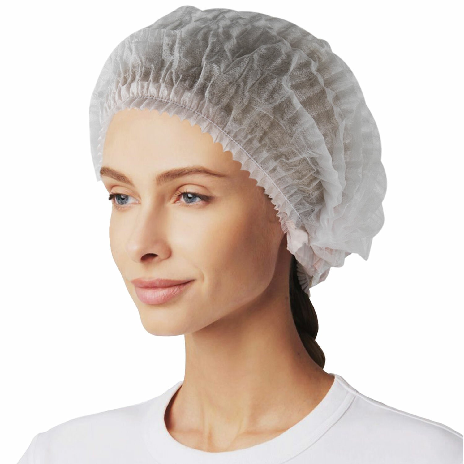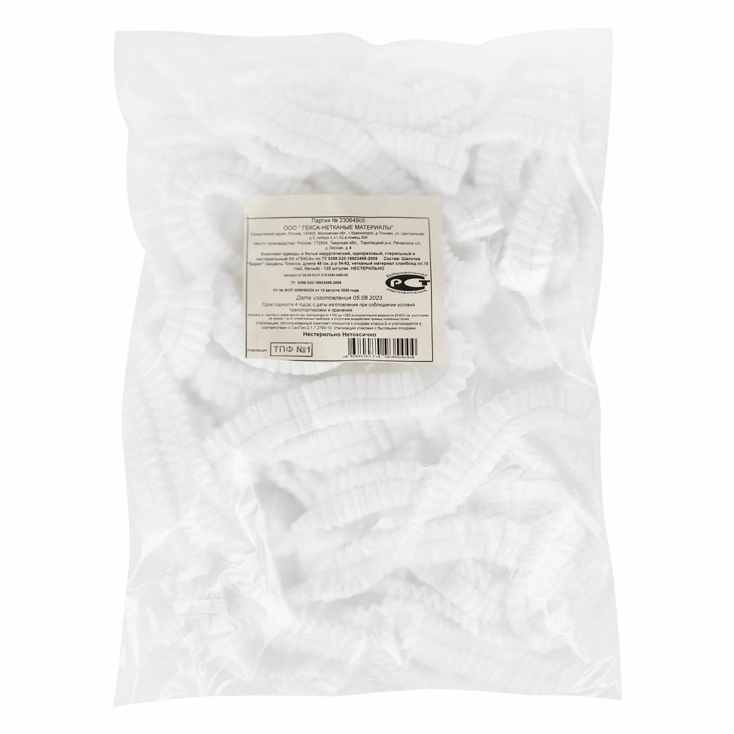 Шапочка-берет Шарлотта "Плиссе" белая, КОМПЛЕКТ 125 шт., спанбонд 8 г/м2, ГЕКСА
