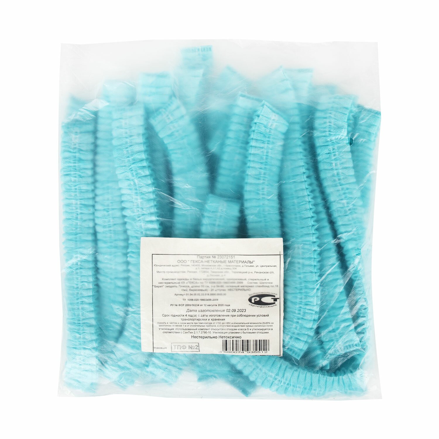 Шапочка-берет Шарлотта "Плиссе" бирюзовая, КОМПЛЕКТ 25 шт., спанбонд 18 г/м2, ГЕКСА