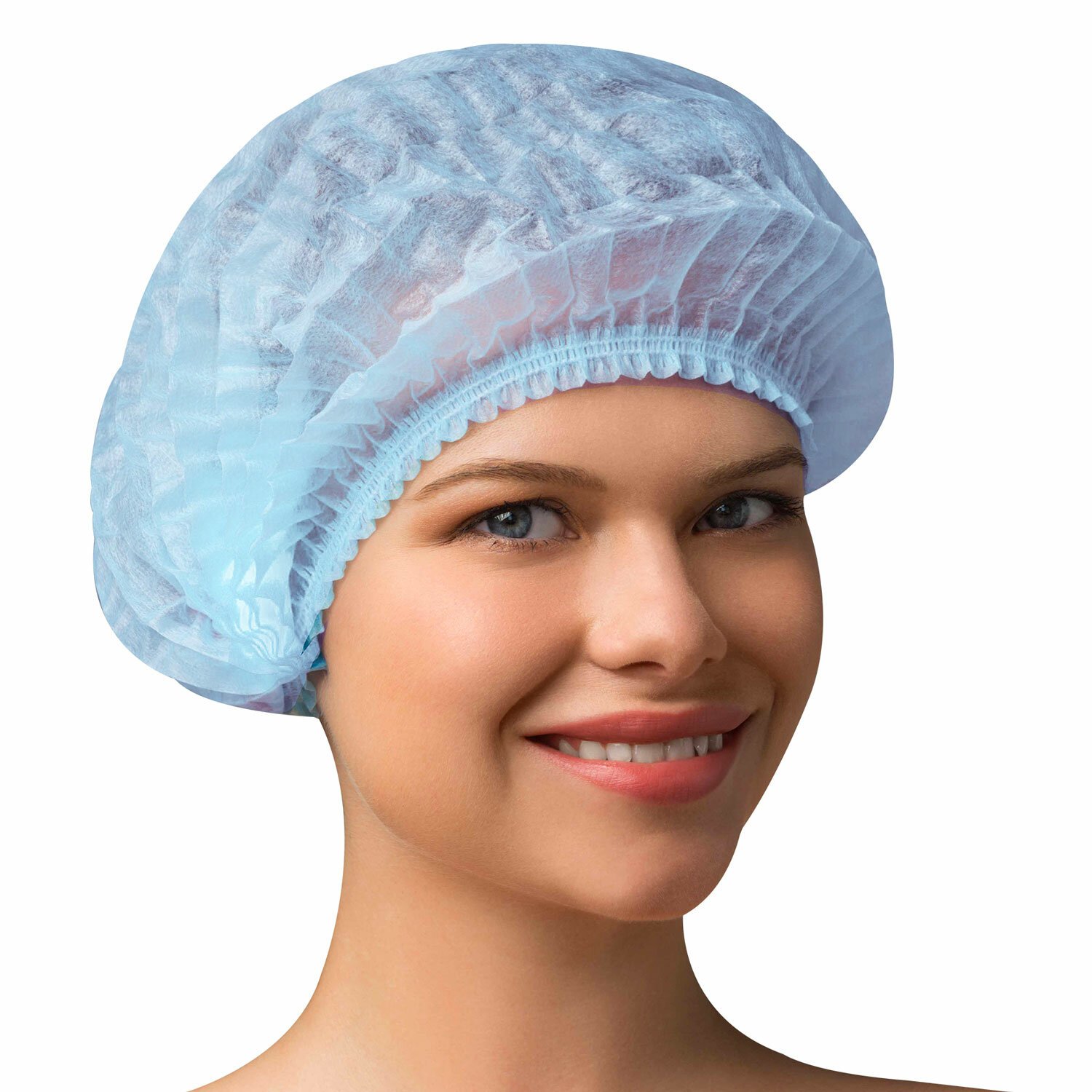 Шапочка-берет Шарлотта "Плиссе" голубая, КОМПЛЕКТ 125 шт., спанбонд 8 г/м2, ГЕКСА