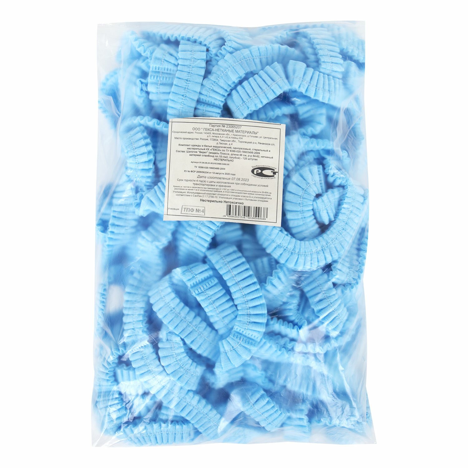 Шапочка-берет Шарлотта "Плиссе" голубая, КОМПЛЕКТ 125 шт., спанбонд 15 г/м2, ГЕКСА