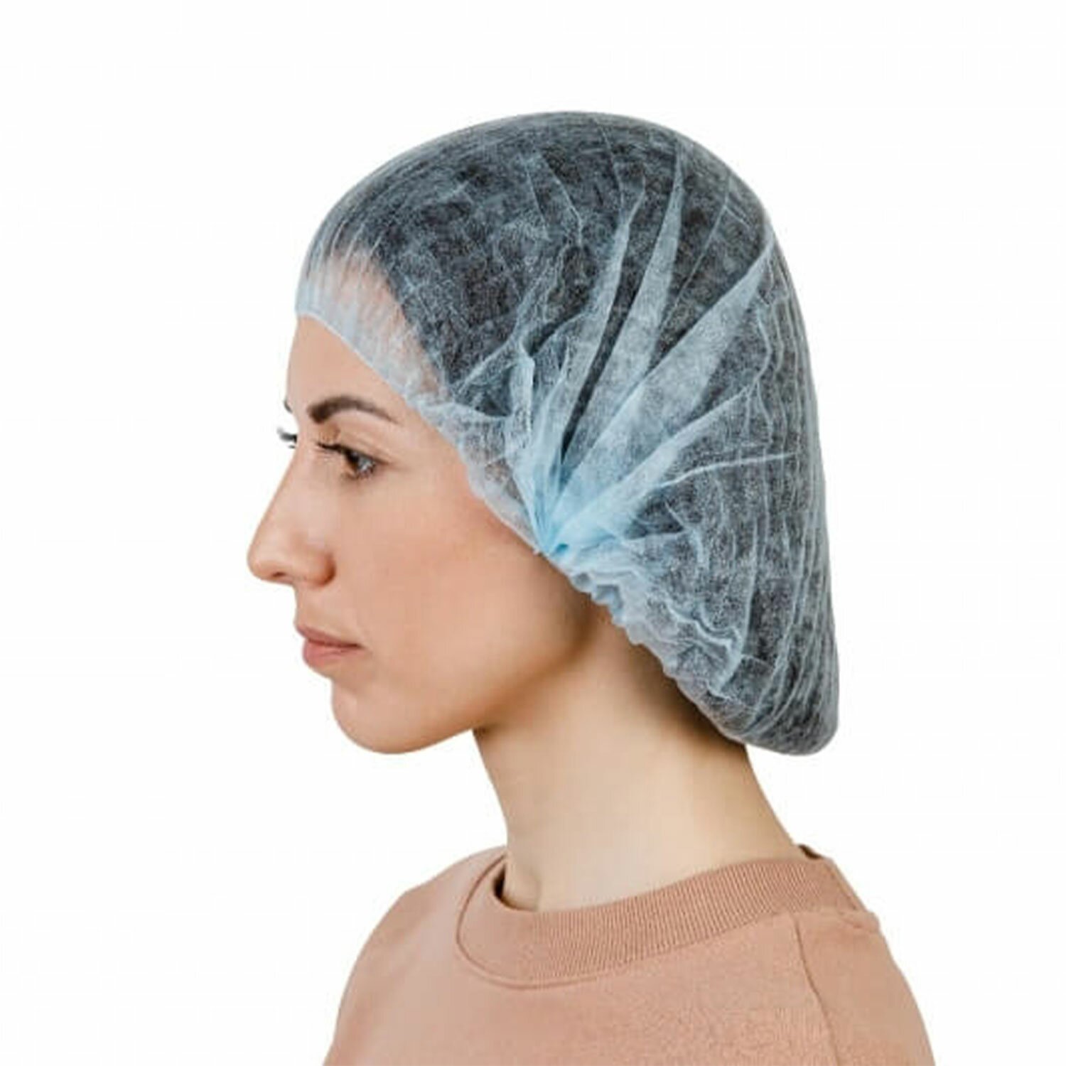 Шапочка голубая "Шарлотта" КОМПЛЕКТ 100 штук из нетканого материала SMS 10г/м2, d=30см, SMZ
