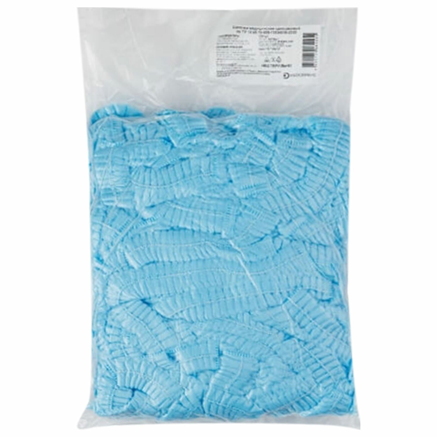 Шапочка "Шарлотта" голубая, КОМПЛЕКТ 100 шт., спанбонд 10 г/м2, МЕДСЕРВИС