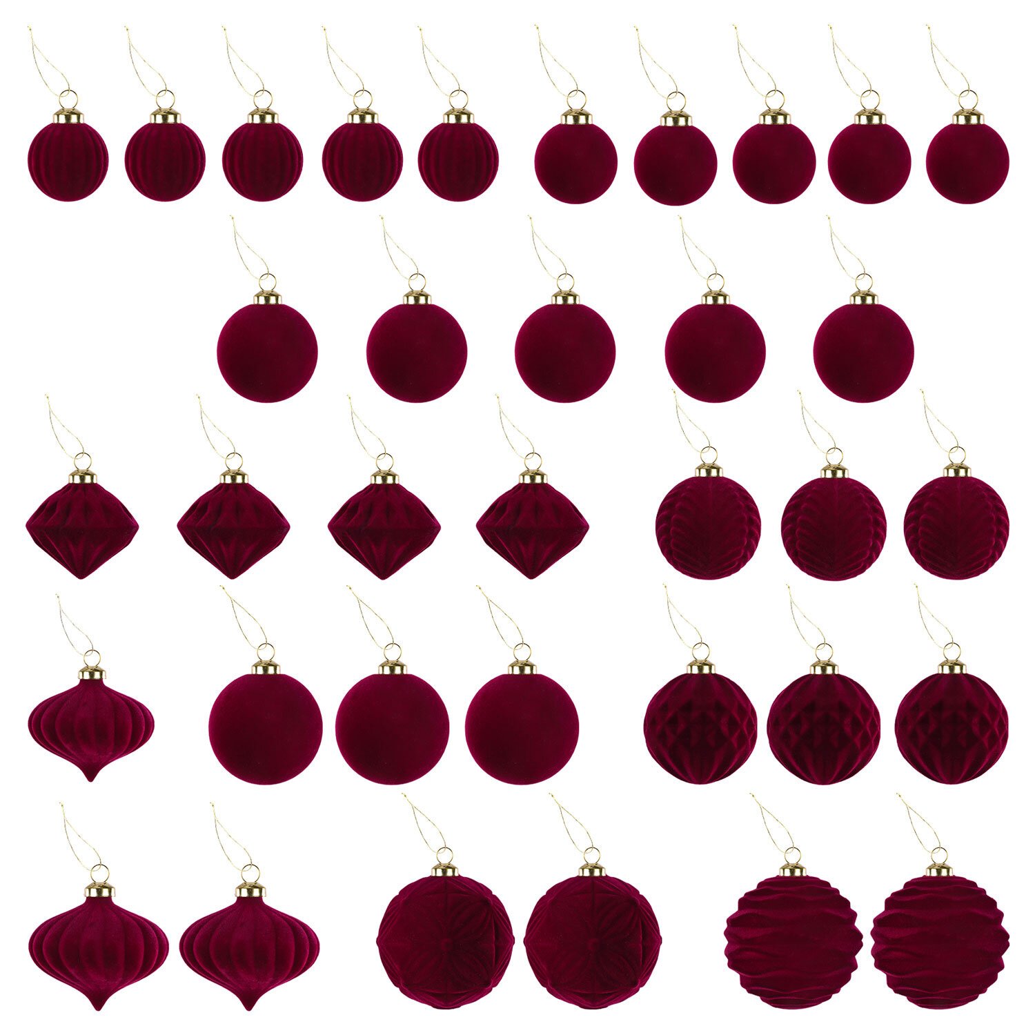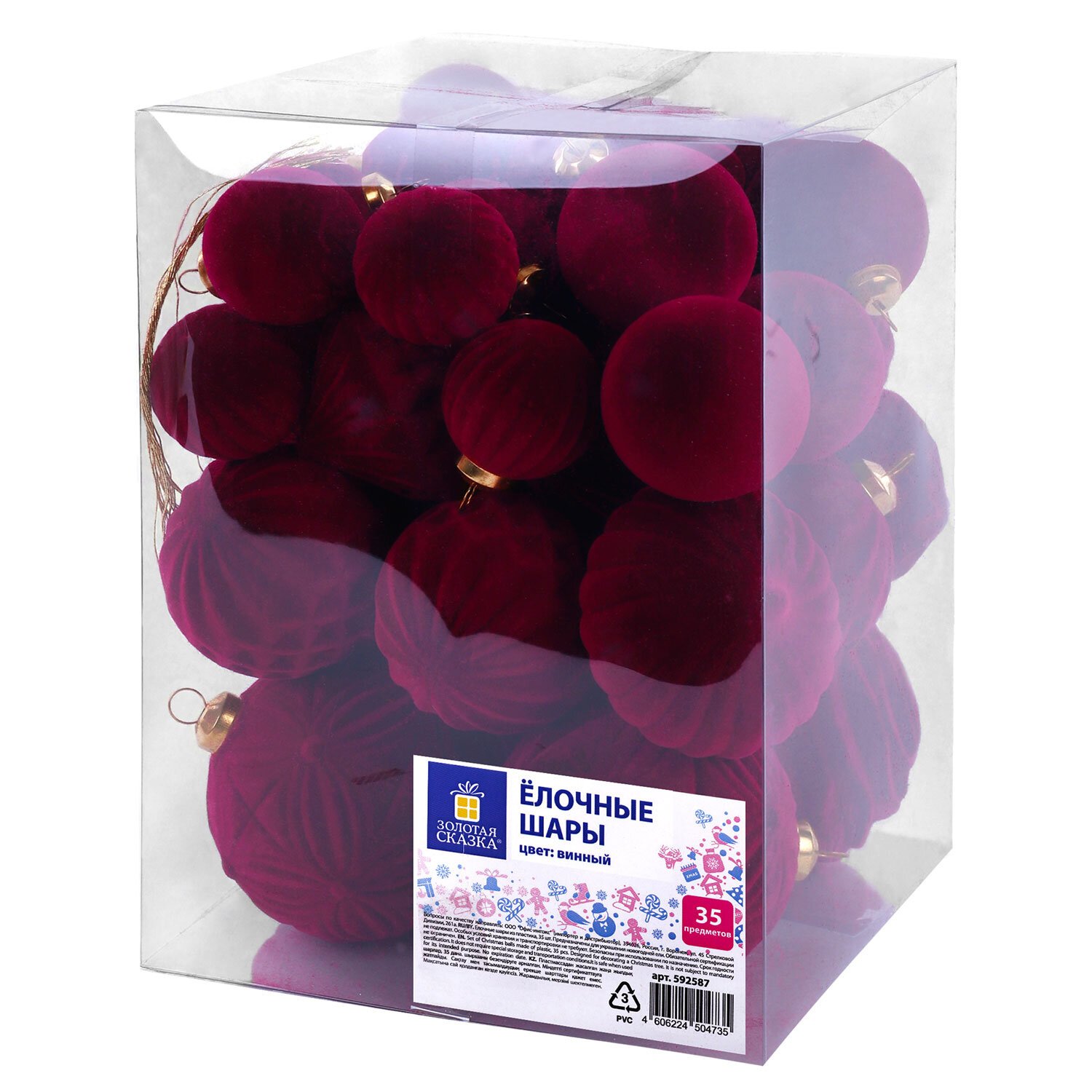 Шары елочные НАБОР 35 предметов, "Гранат", пластик, софт тач, винный, ЗОЛОТАЯ СКАЗКА, 592587