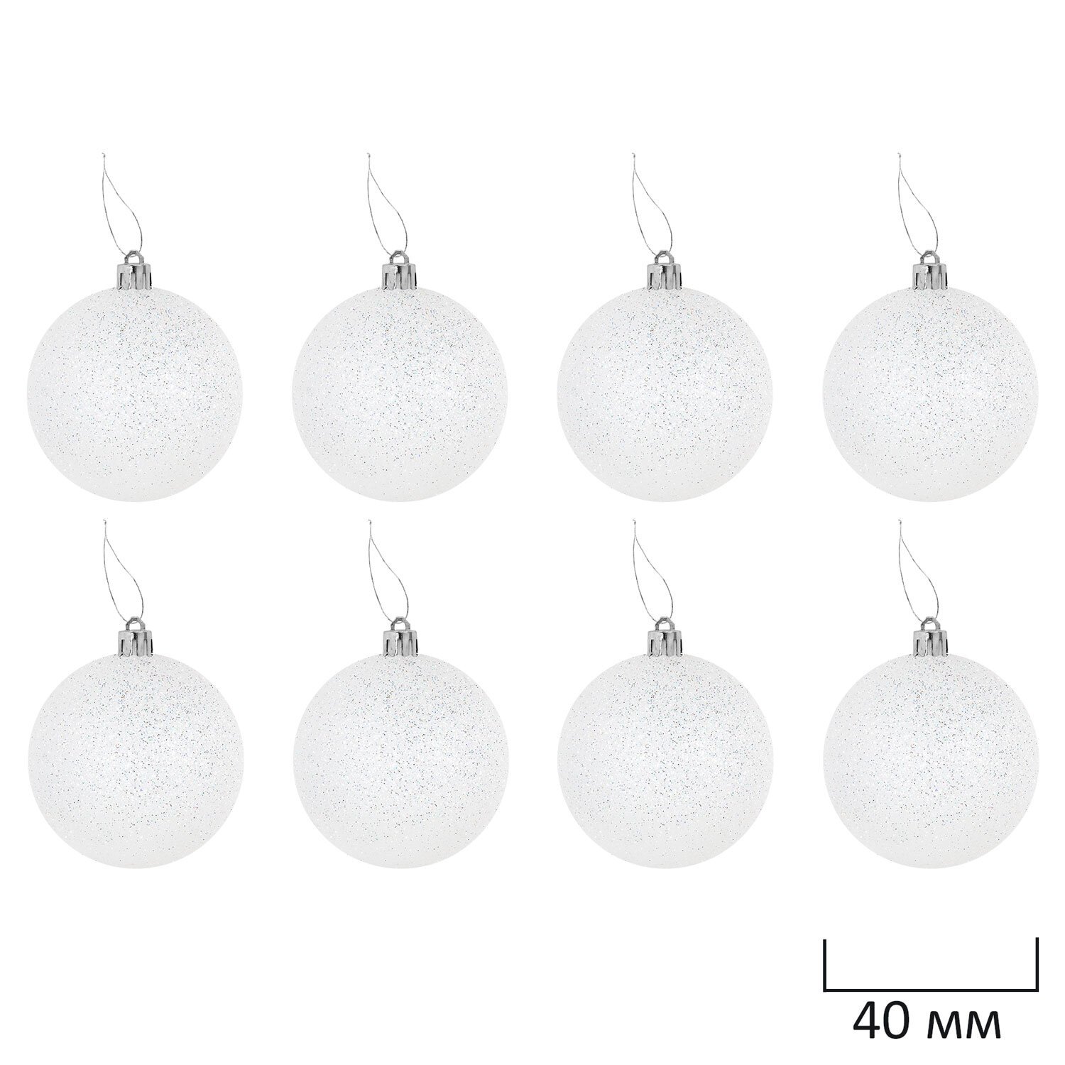 8 шаров белого цвета с эффектом глиттер (диаметром 4 см),
