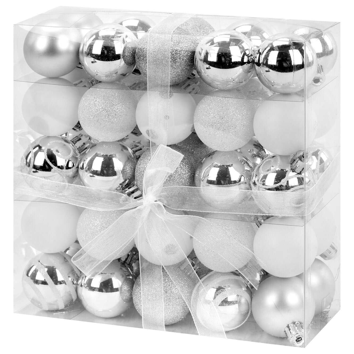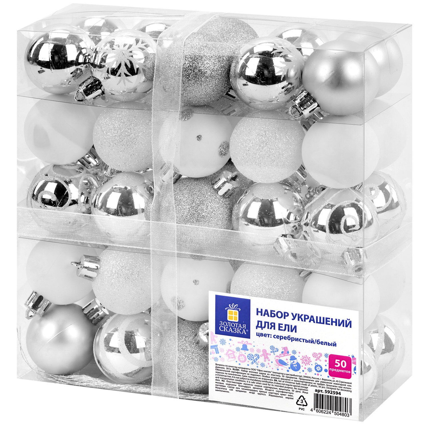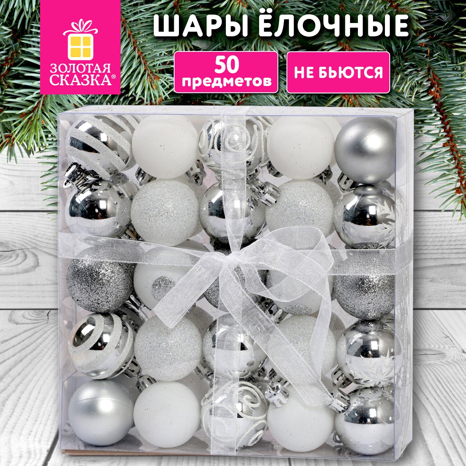 Шары елочные НАБОР 50 предметов "Новогодний Блеск", пластик, серебристый, ЗОЛОТАЯ СКАЗКА, 592594