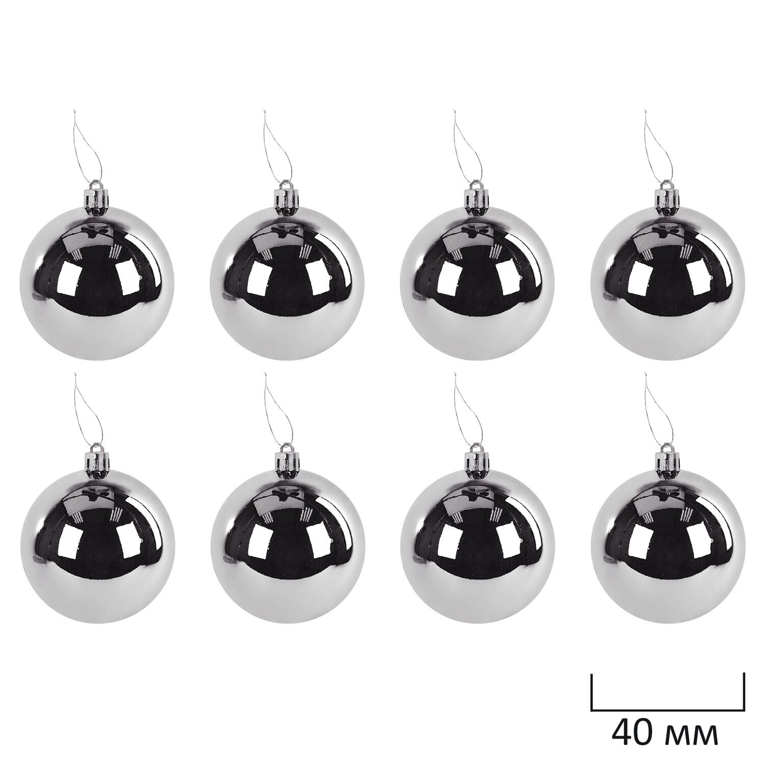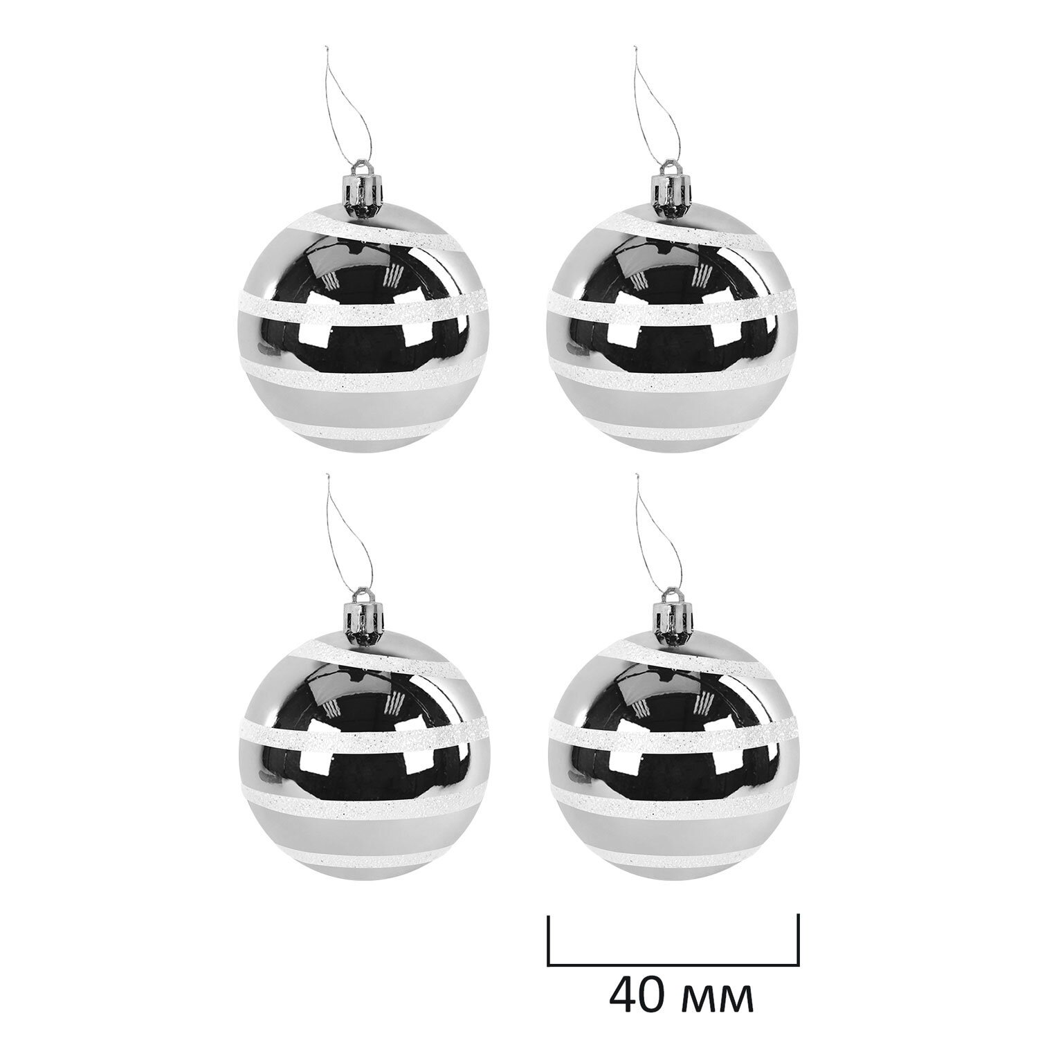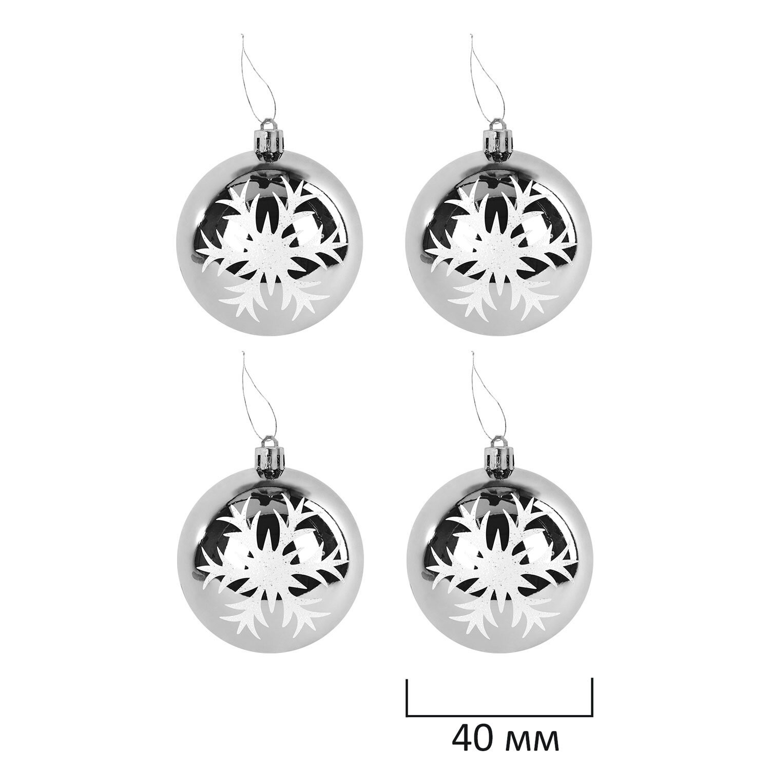 4 шара серебристого цвета с глянцевым эффектом (диаметром 4 см),