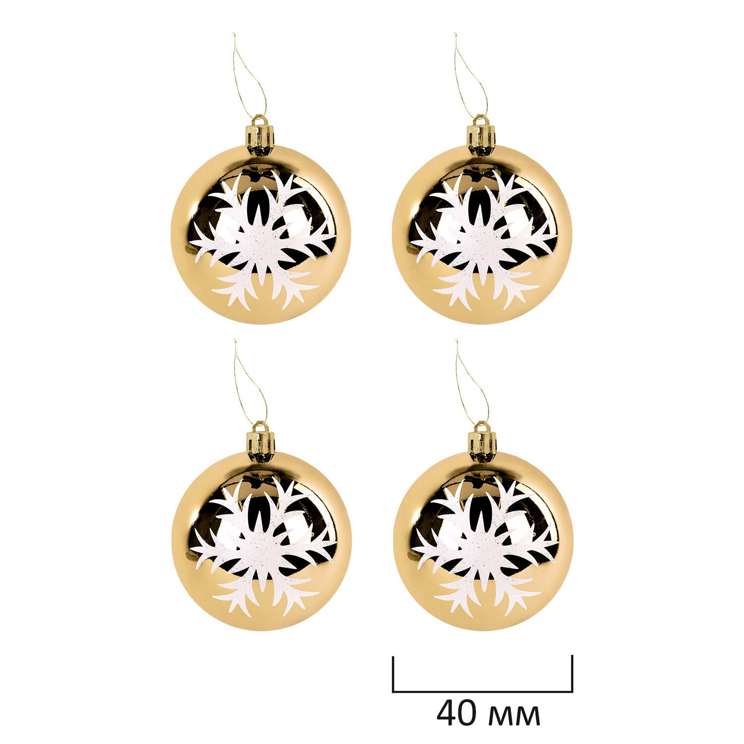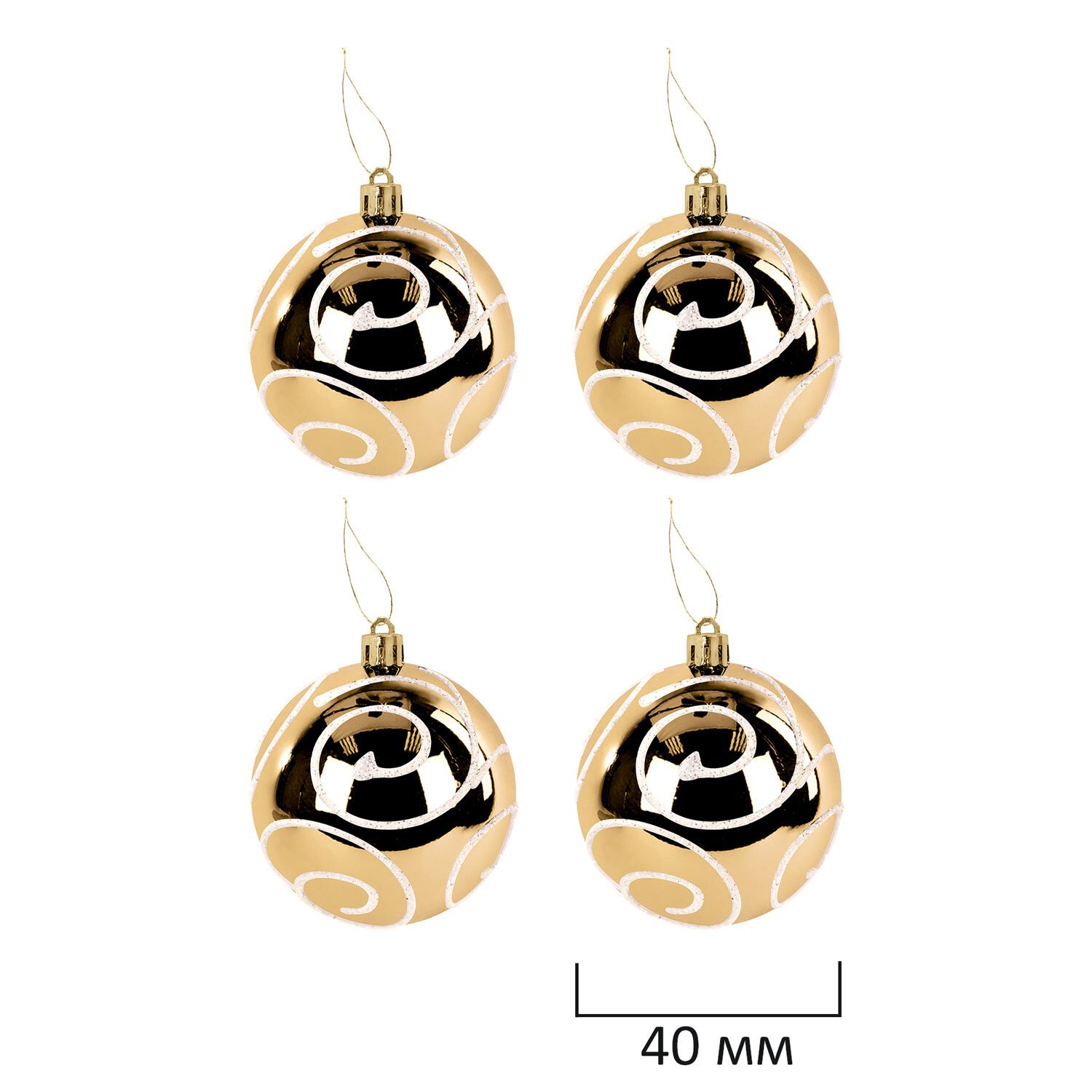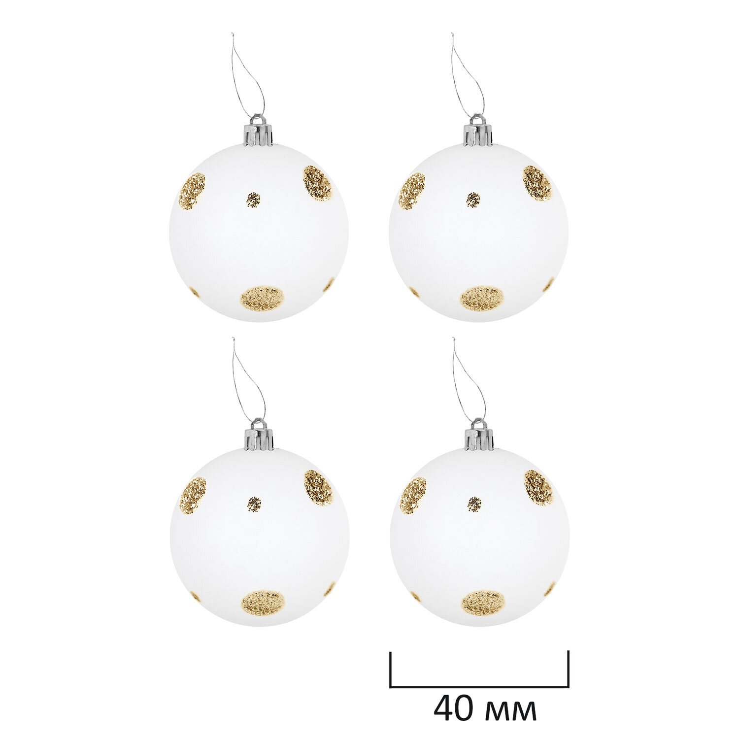 4 шара белого цвета с золотистым рисунком и матовым эффектом ( 4 см),