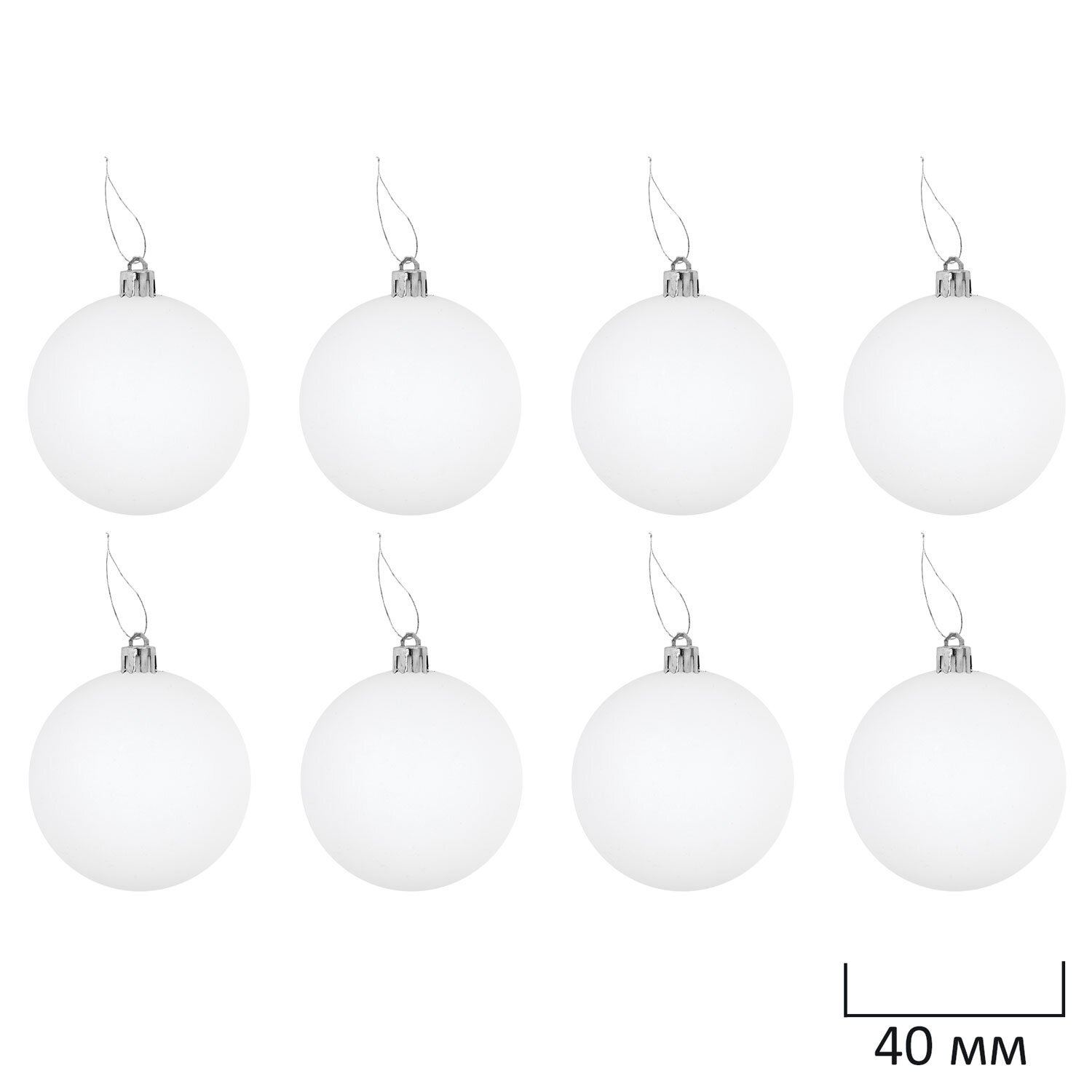 8 шаров белого цвета с матовым эффектом (диаметром 4 см),