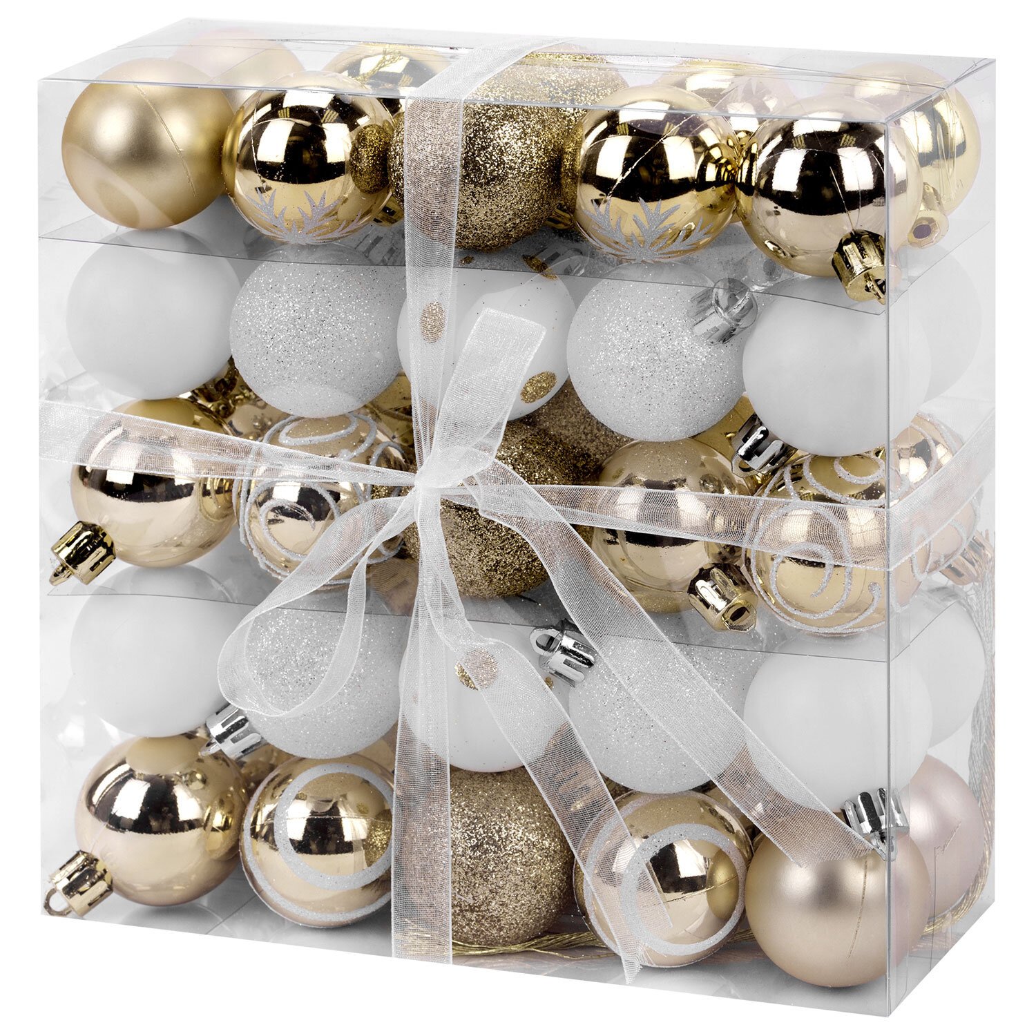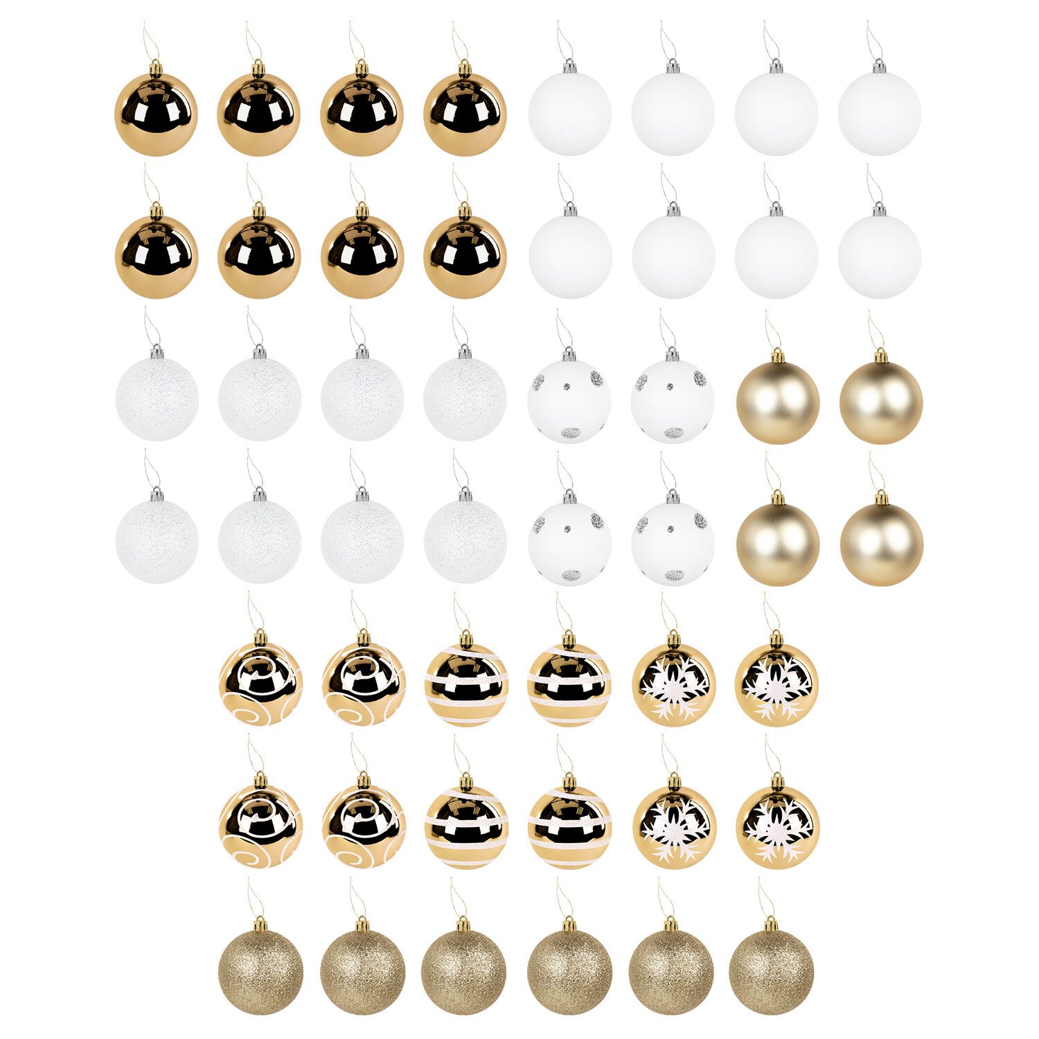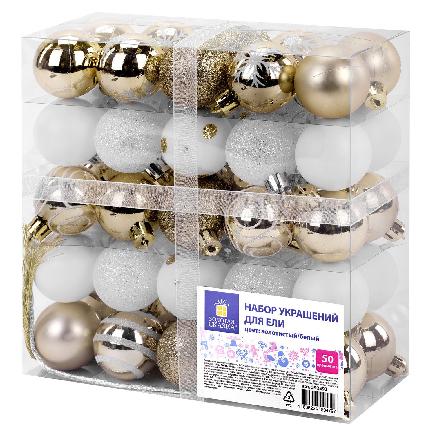 Шары елочные НАБОР 50 предметов "Новогодняя Сказка", пластик, золото/белый, ЗОЛОТАЯ СКАЗКА, 592593