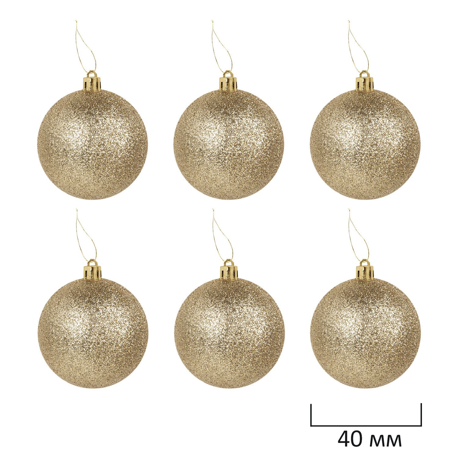6 шаров золотистого цвета с эффектом глиттер (диаметром 4 см),