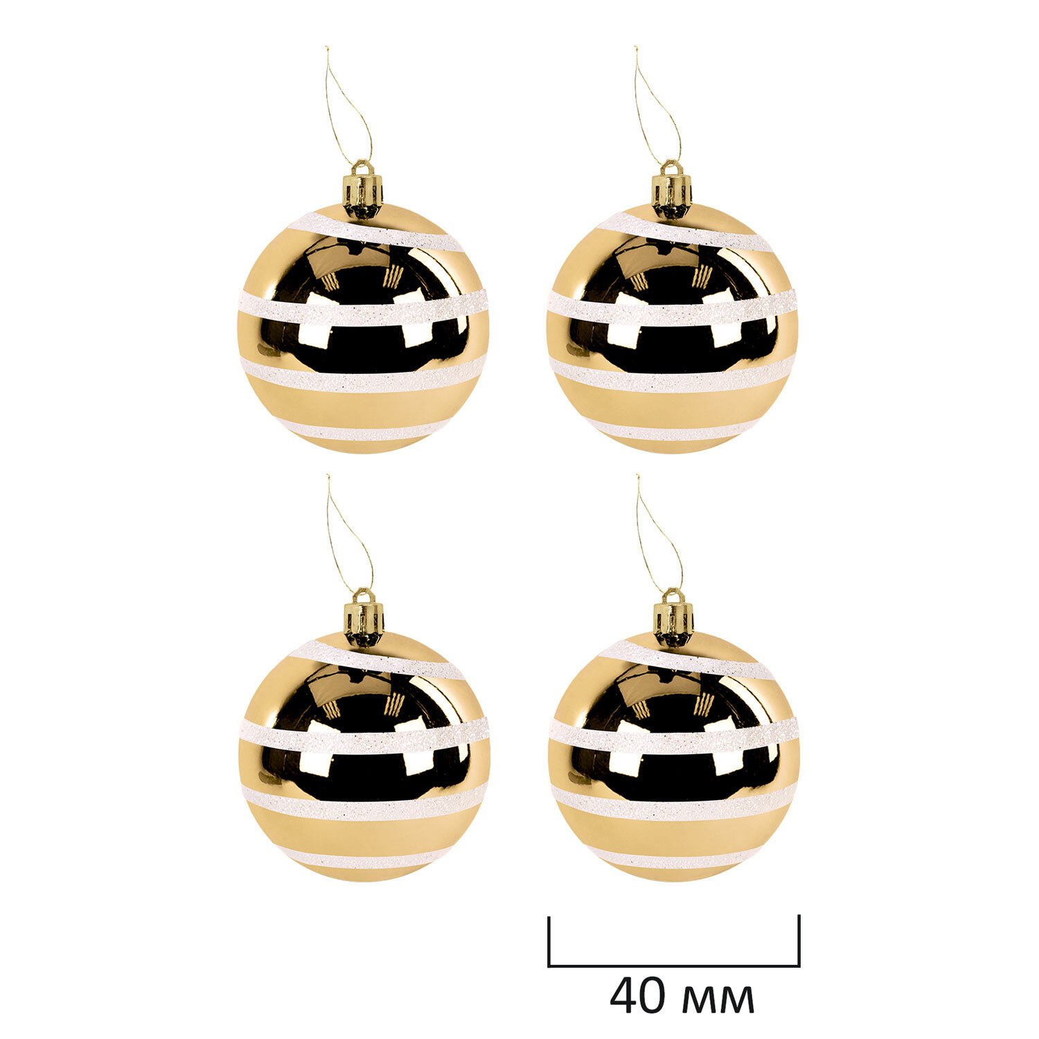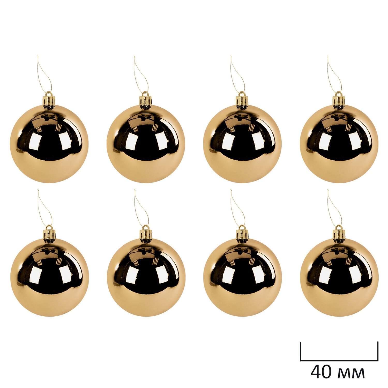 8 шаров золотистого цвета с глянцевым эффектом ( диаметром 4 см),