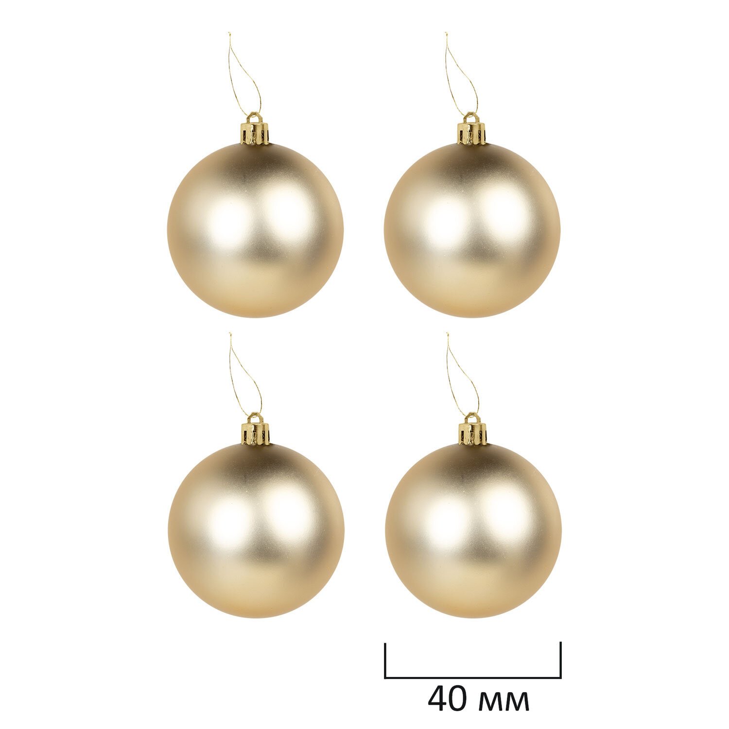 4 шара золотистого цвета с матовым эффектом ( диаметром 4 см),