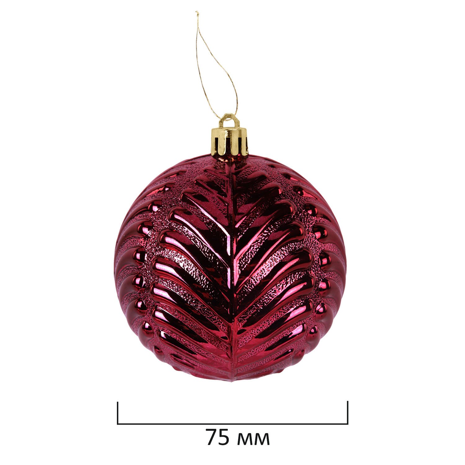 3 шара цвета бордо с глянцевым эффектом и объемным рисунком (диаметром 8 см),