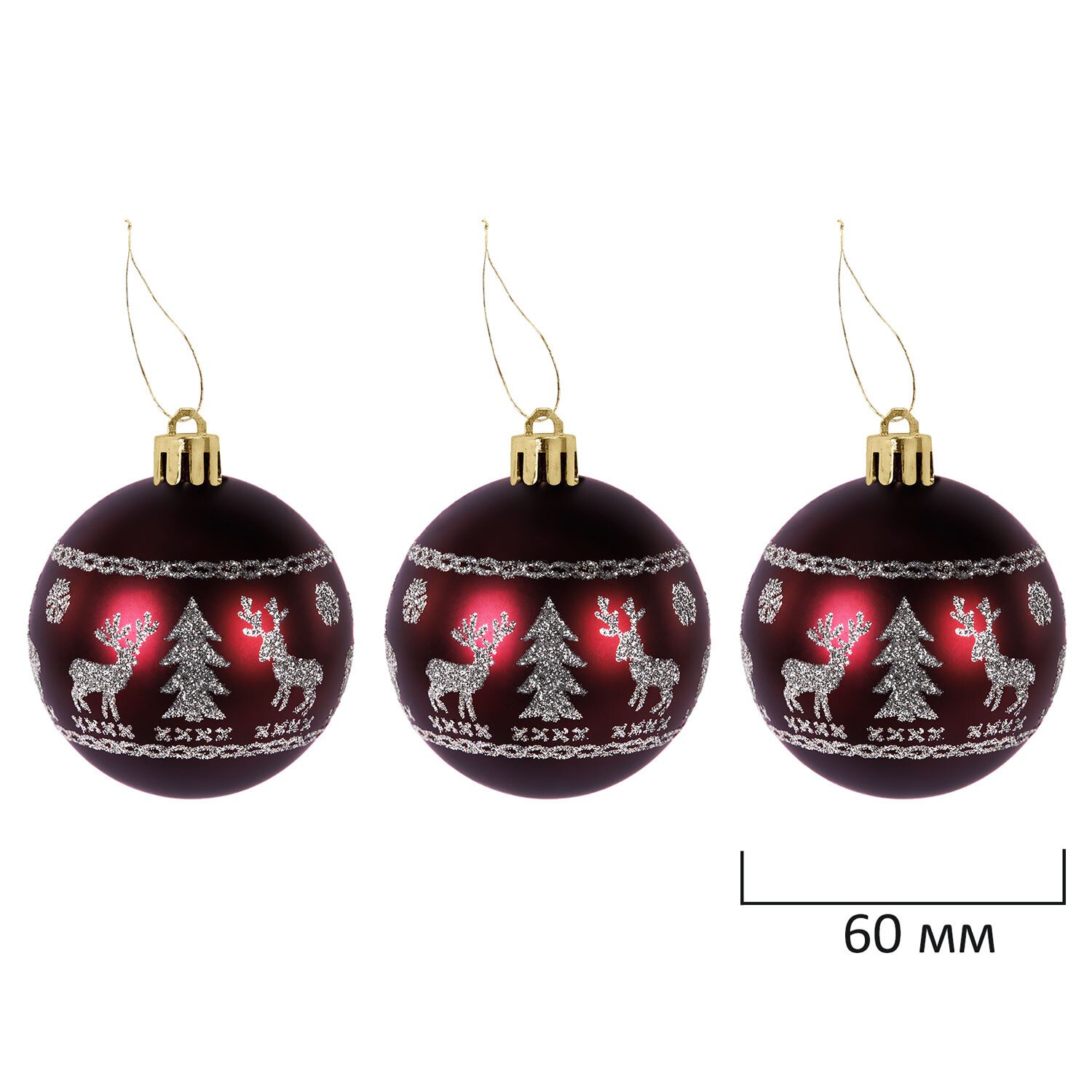 3 шара цвета бордо с глянцевым эффектом и рисунком (диаметром 6 см),
