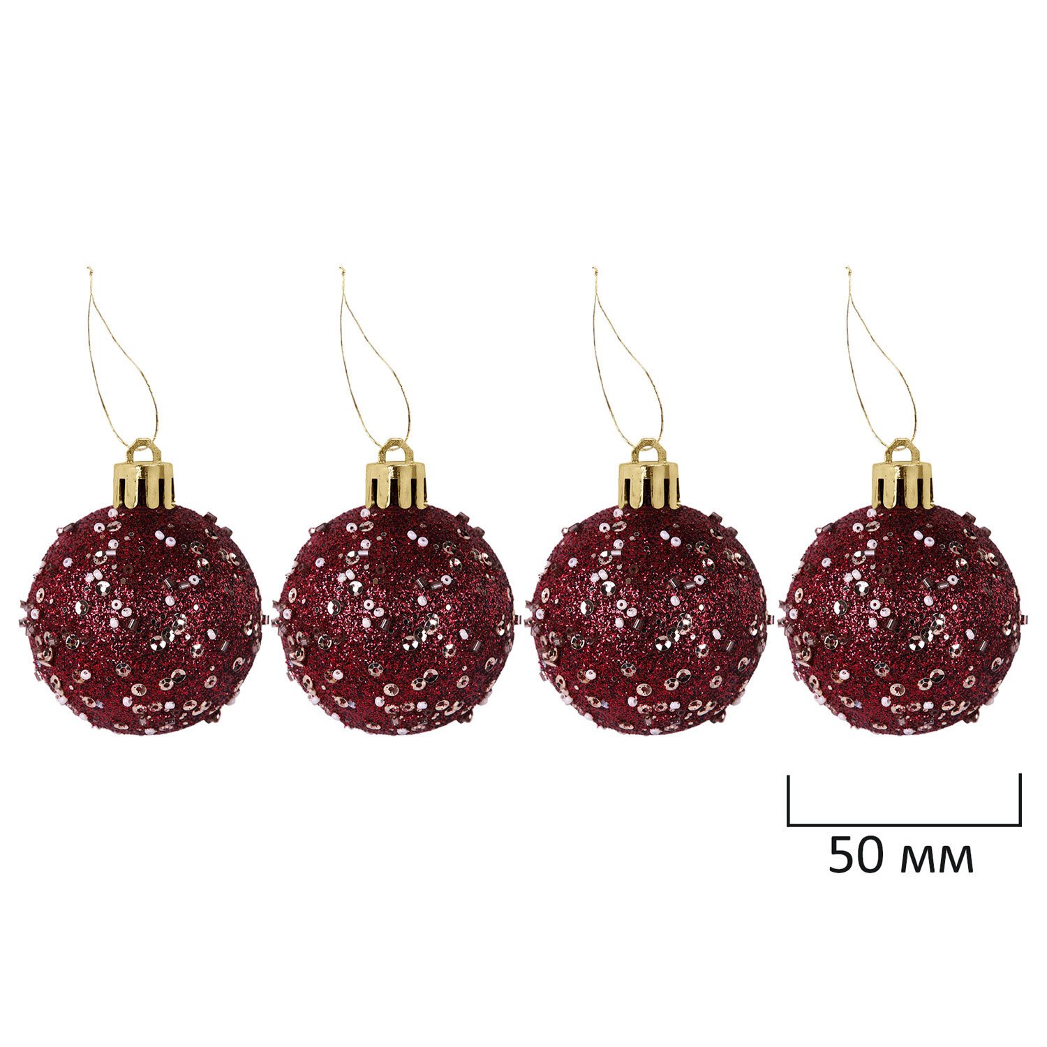 4 шара цвета бордо с глиттером (диаметром 5 см),