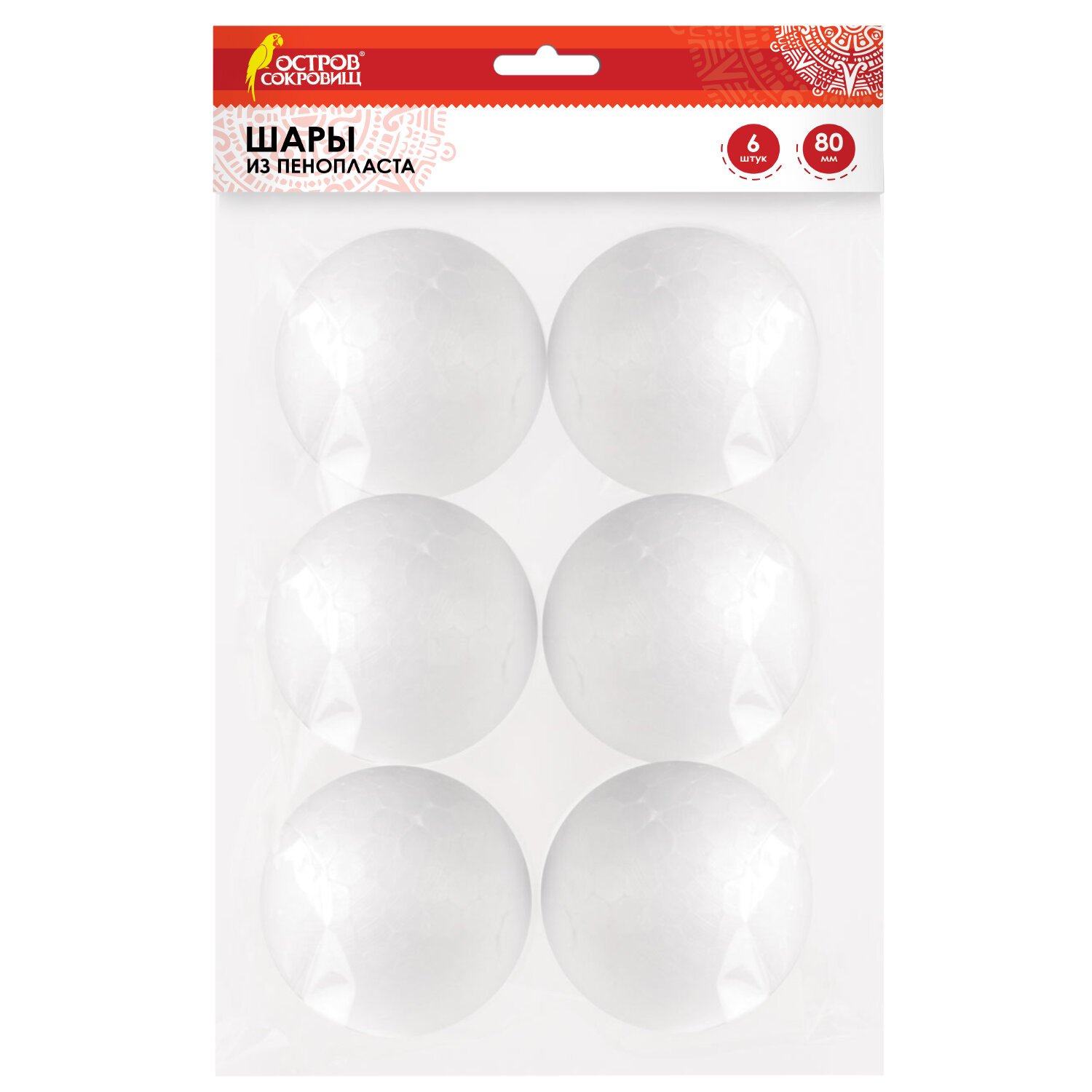 Шары из пенопласта, 80 мм, 6 шт., ОСТРОВ СОКРОВИЩ, 665368