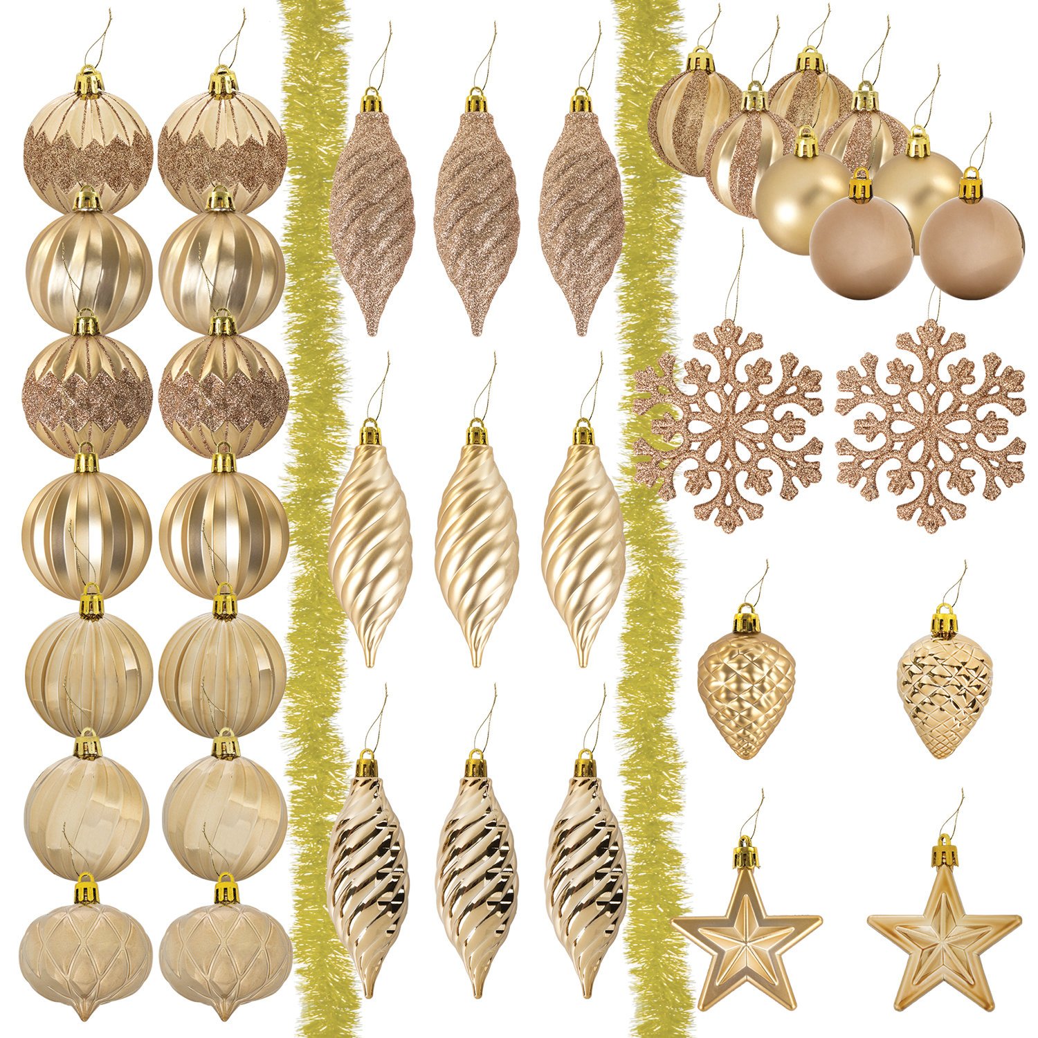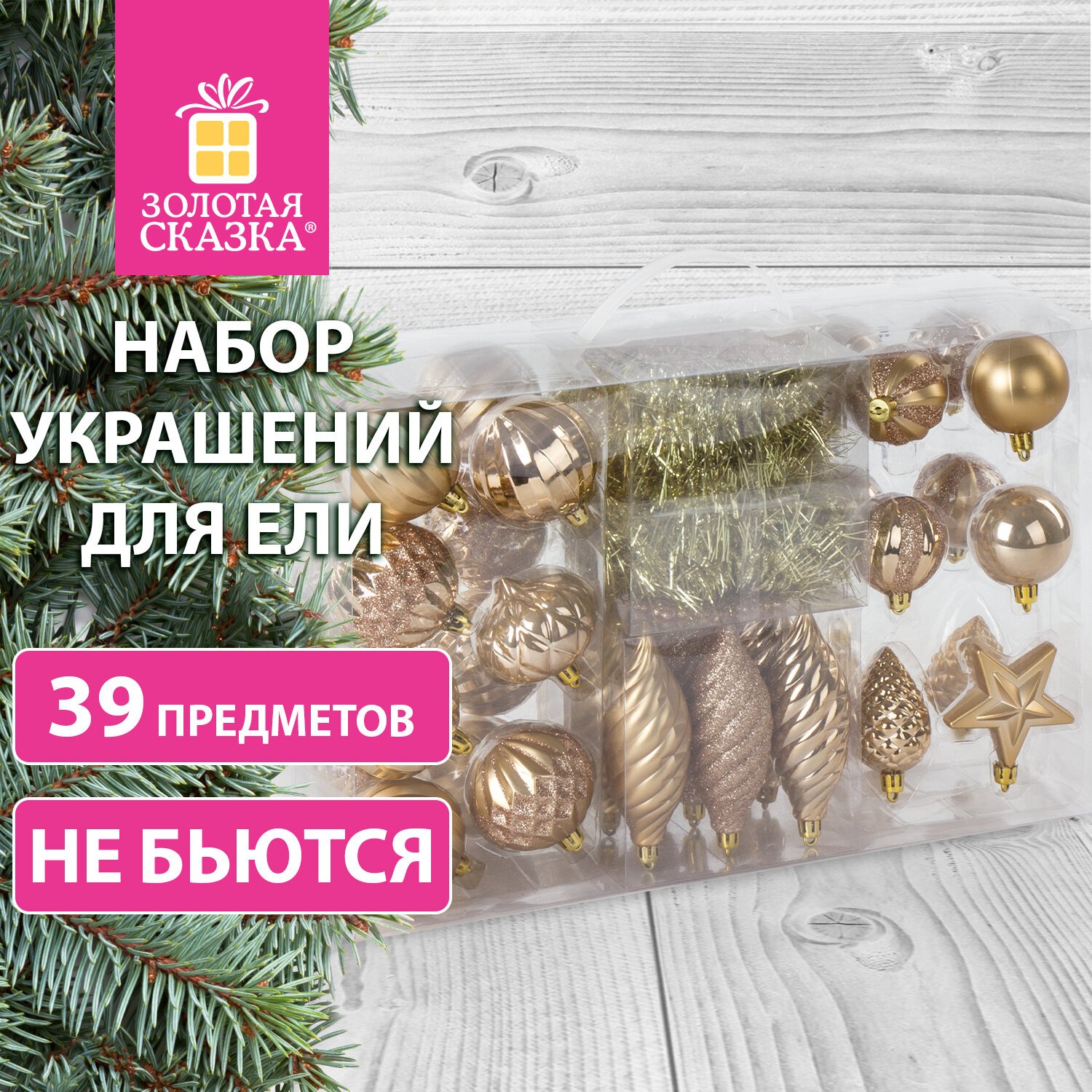 Шары новогодние ёлочные "Gold Rush" НАБОР 39 предметов, пластик, золотистый, ЗОЛОТАЯ СКАЗКА, 591128