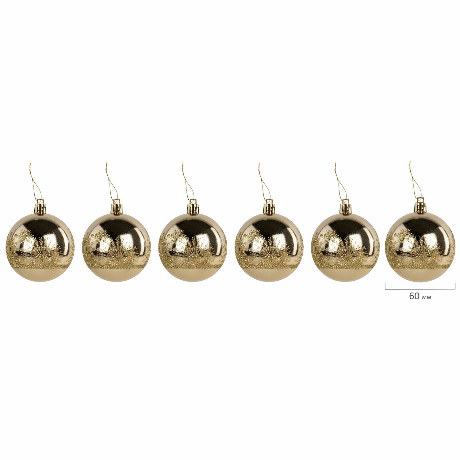 6 шаров золотистого цвета диаметром 6 см с глянцевым эффектом, с золотистым рисунком с эффектом "глиттер",