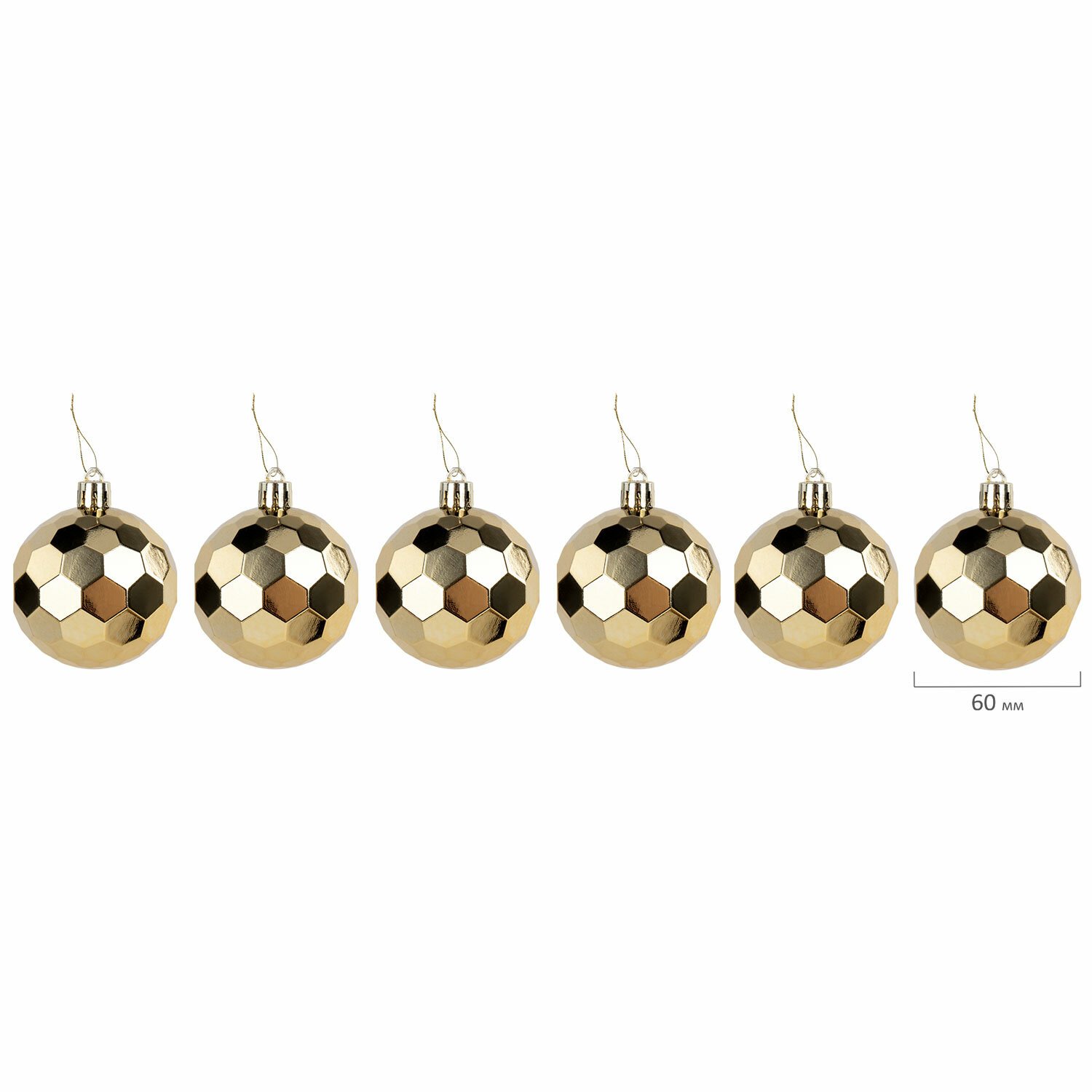 6 шаров золотистого цвета диаметром 6 см с глянцевым эффектом в виде диско-шара,