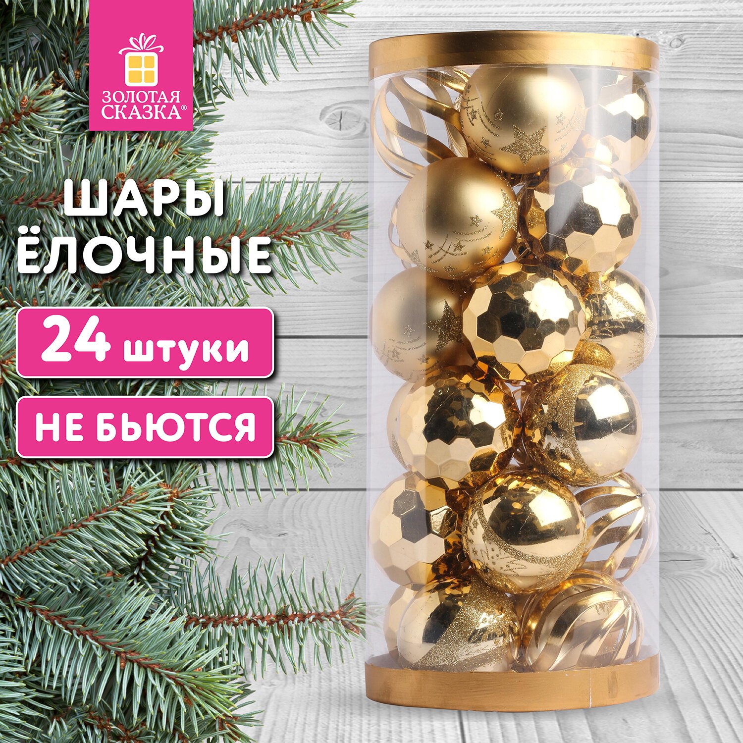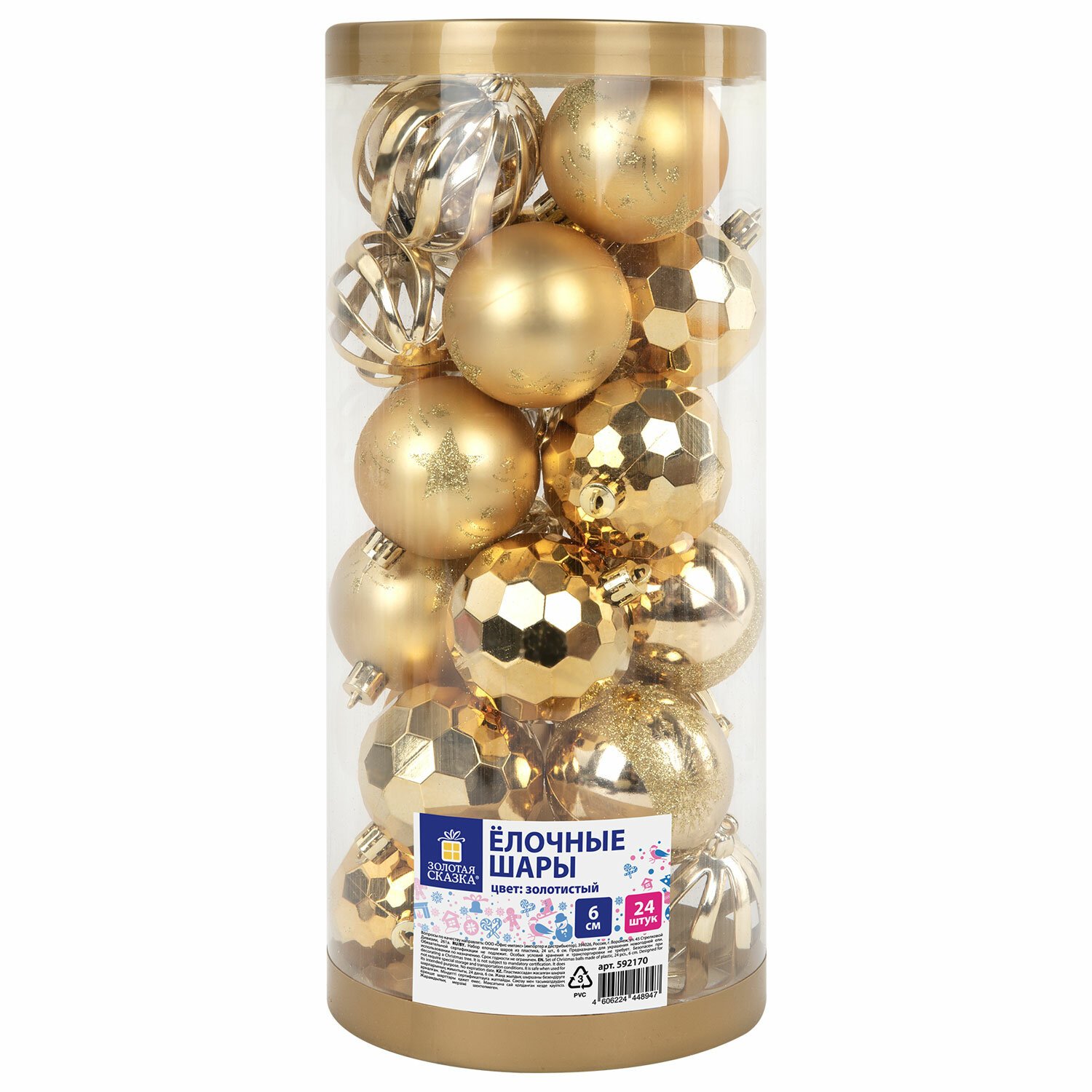Шары ёлочные 24 шт., 6 см, "Fine Gold", пластик, золотистые, туба, ЗОЛОТАЯ СКАЗКА, 592170