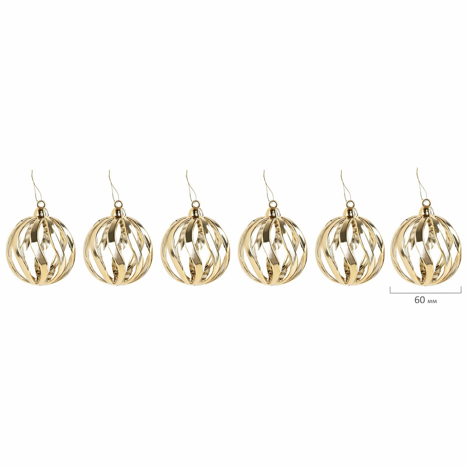 6 шаров золотистого цвета диаметром 6 см с S-образными выемками с глянцевым эффектом,