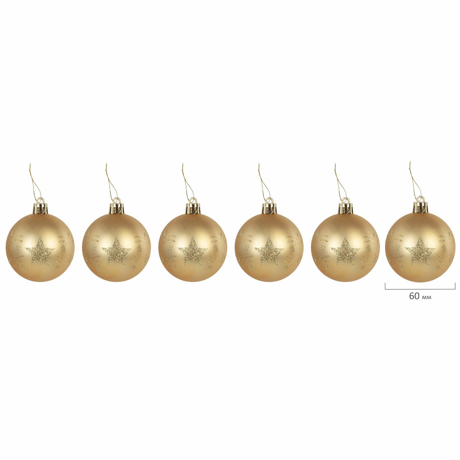 6 шаров золотистого цвета диаметром 6 см с матовым эффектом, с золотистым рисунком с эффектом "глиттер",