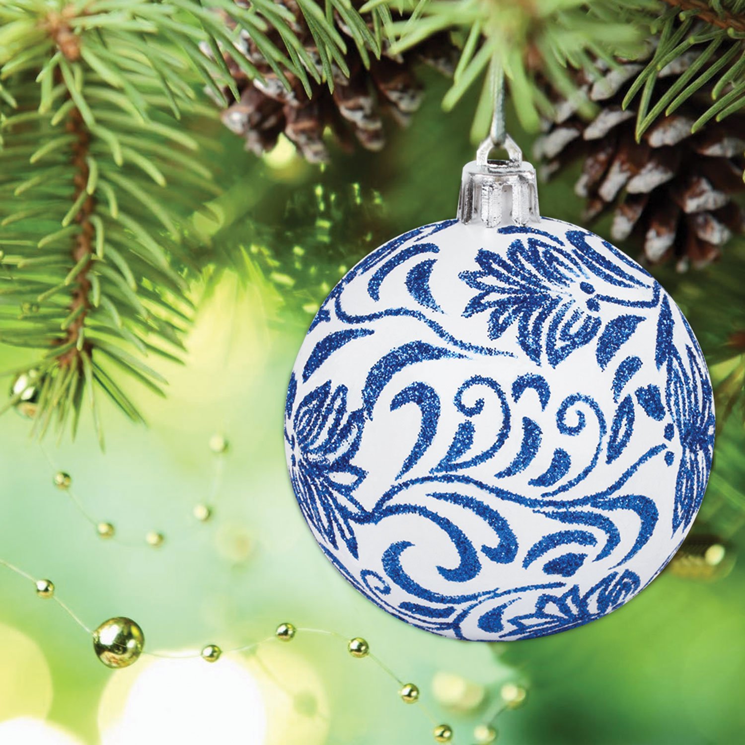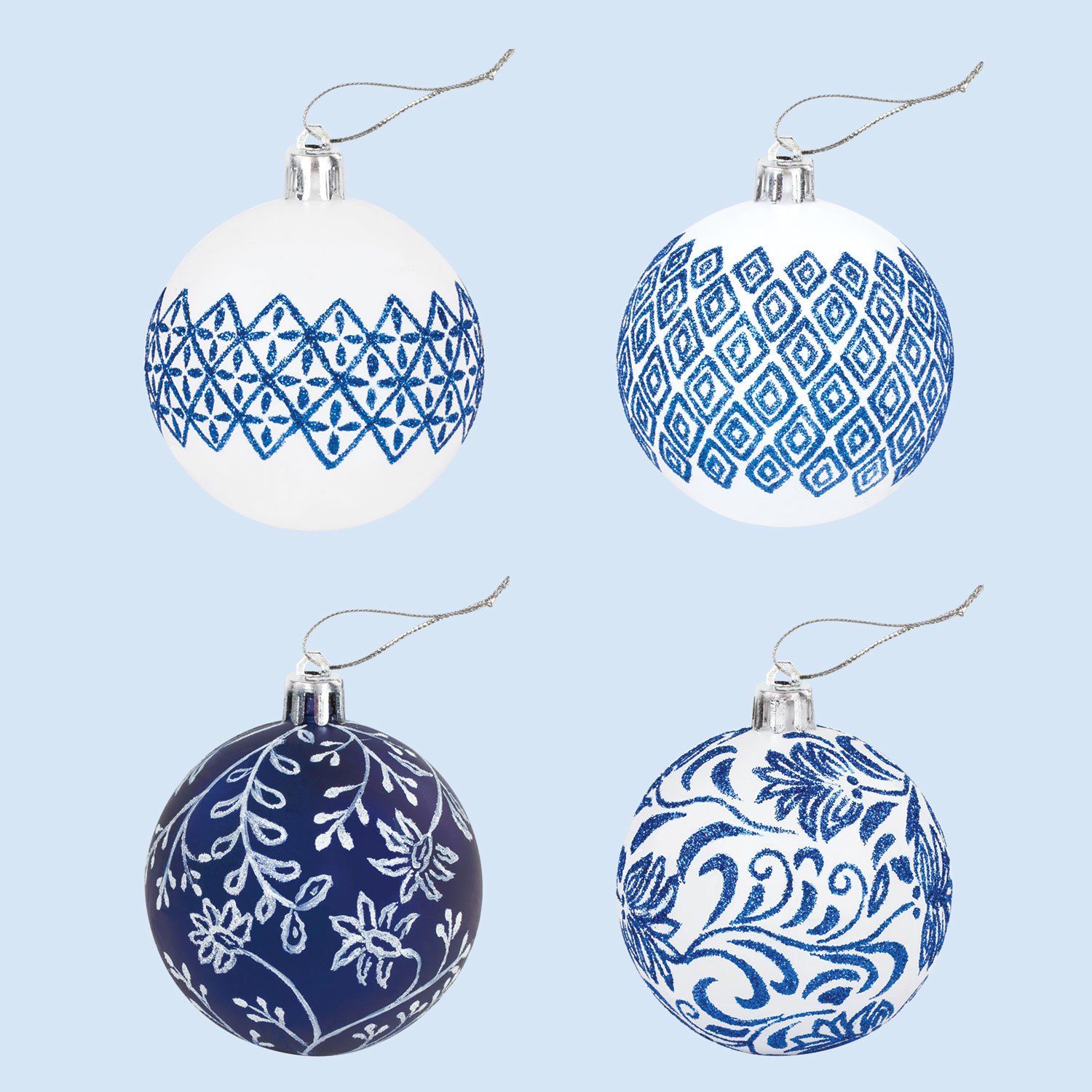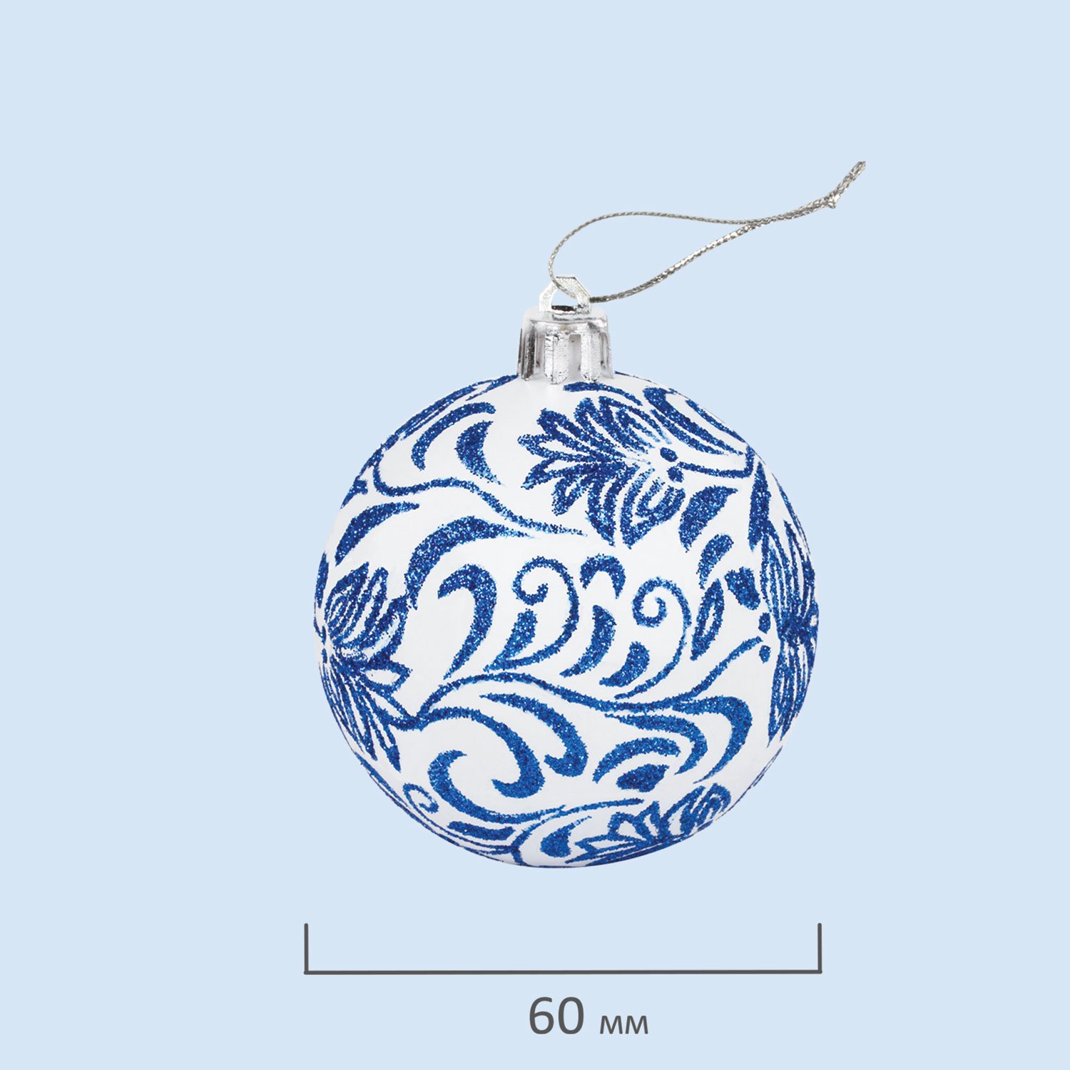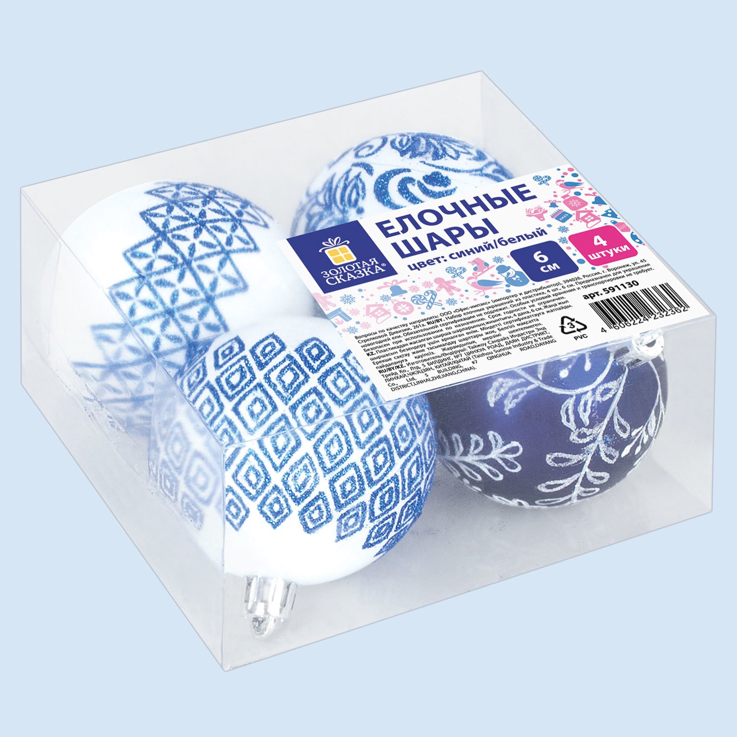 Шары ёлочные 4 шт., 6 см, "Гжель", пластик, цвет: синий/белый, ЗОЛОТАЯ СКАЗКА, 591130