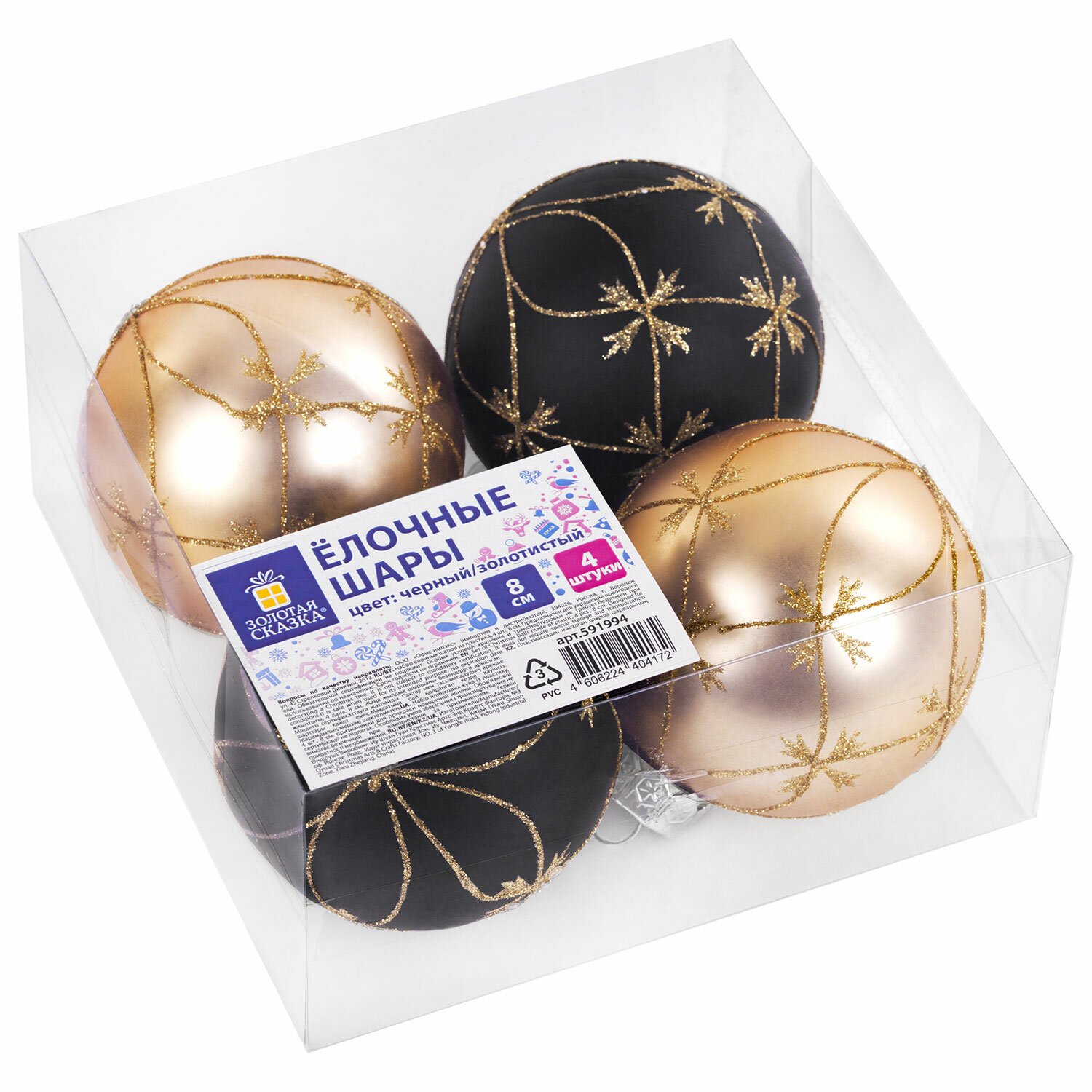 Шары ёлочные 4 шт., 8 см, "Aristo", пластик, цвет: черный/золотистый, ЗОЛОТАЯ СКАЗКА, 591994