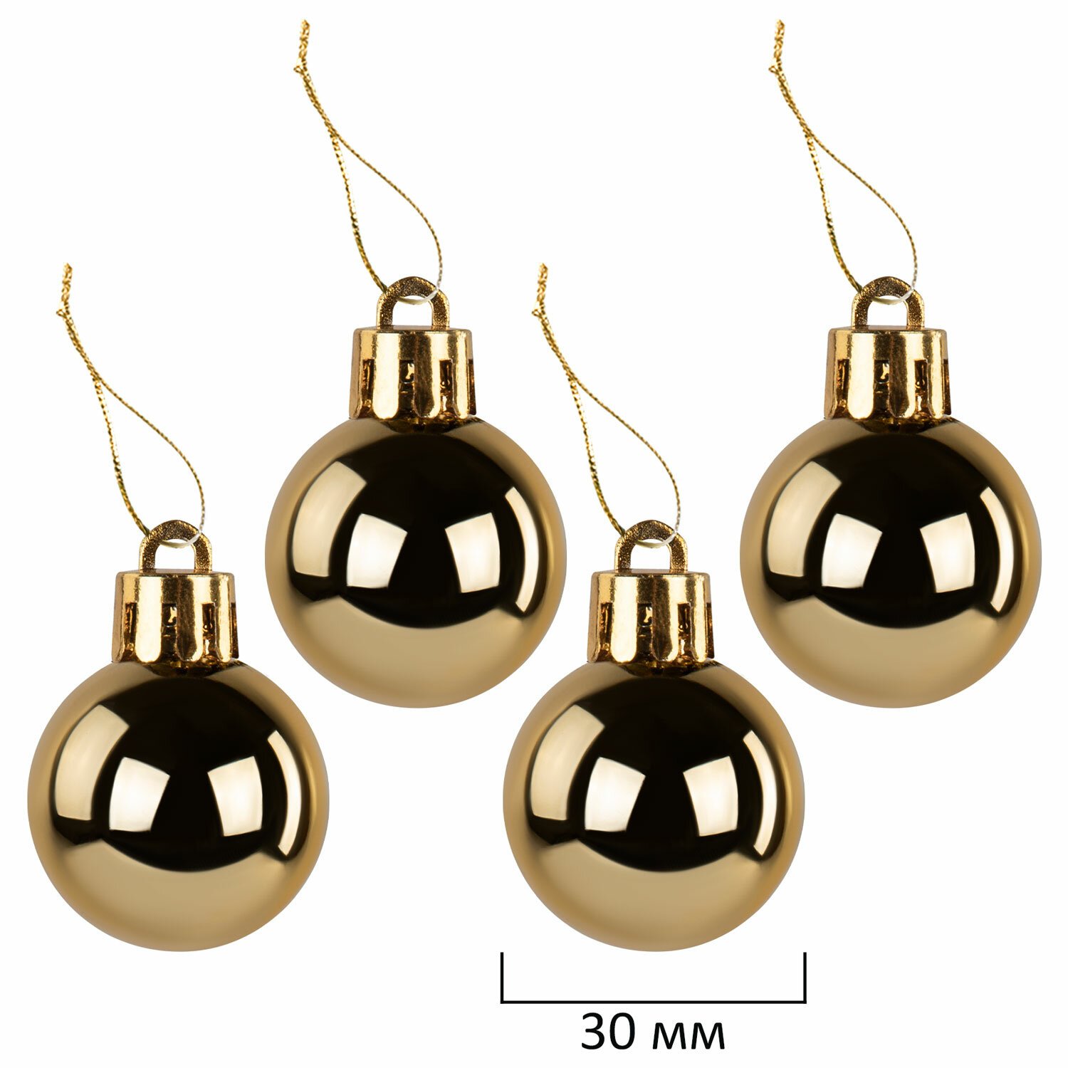 4 шара золотистого цвета, с глянцевым эффектом (диаметром 3 см),