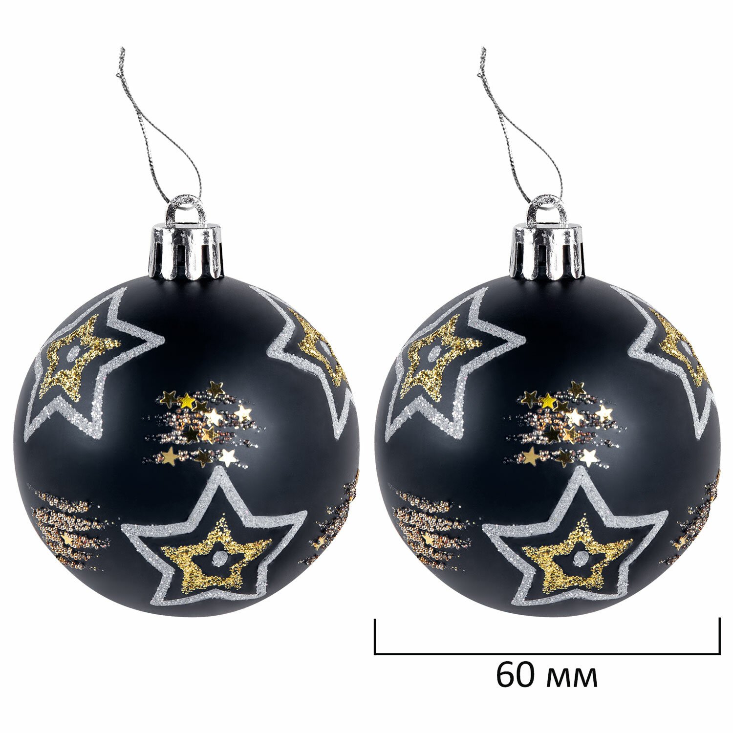 2 шара темно-синего цвета с матовым эффектом и с золотистым рисунком (диаметром 6 см),