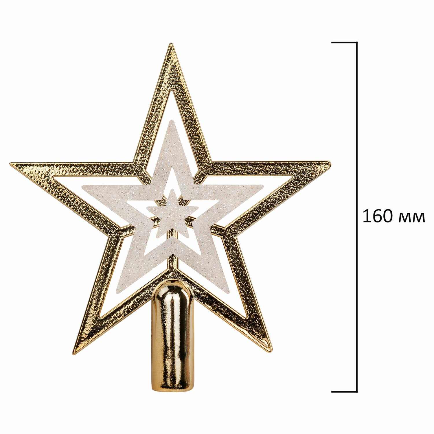 1 пластиковое украшение на верхушку ели в форме пятиконечной звезды золотистого и белого цветов с глянцевым и "глиттер"-эффектом (размером 16 см),
