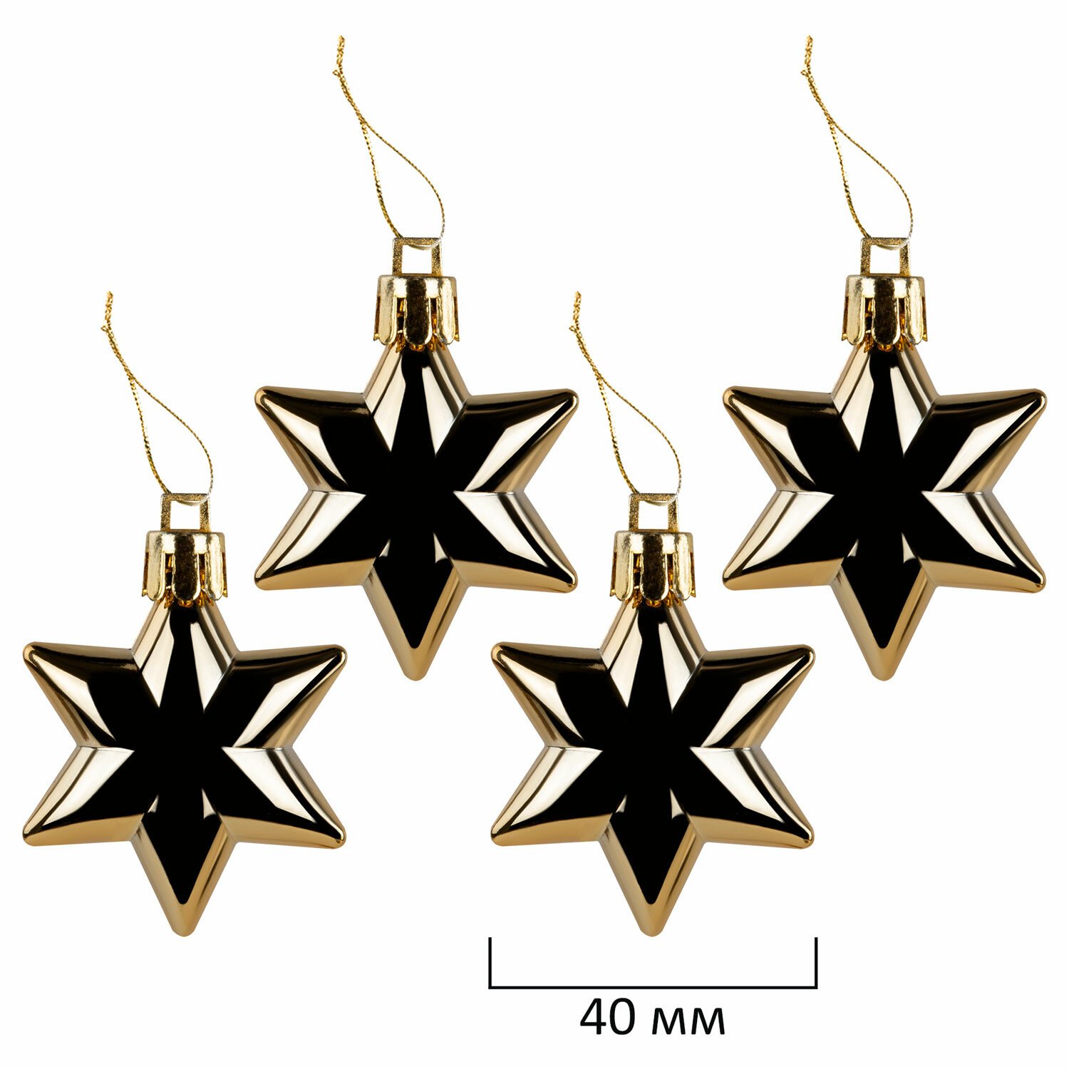 4 украшения в форме звездочек золотистого цвета с глянцевым эффектом (размер 4 см),