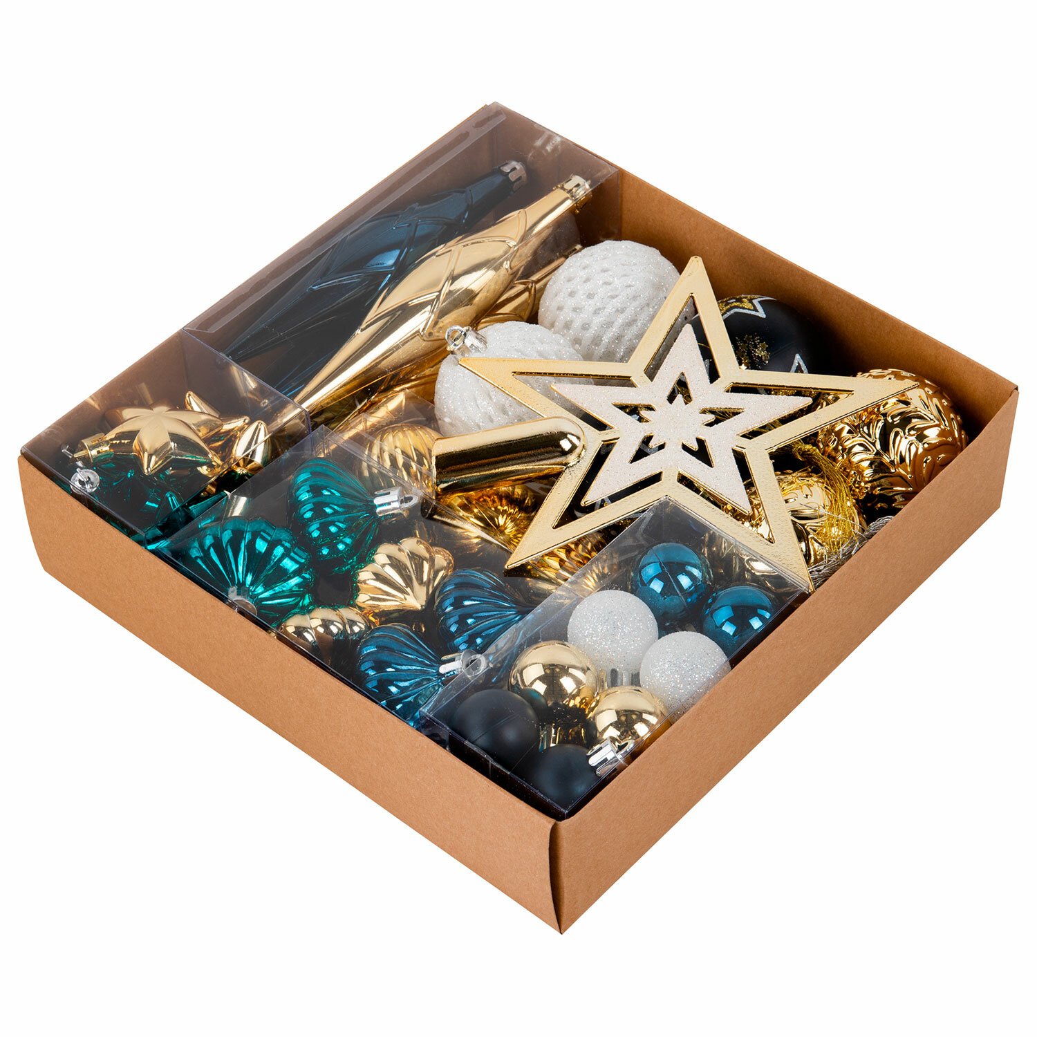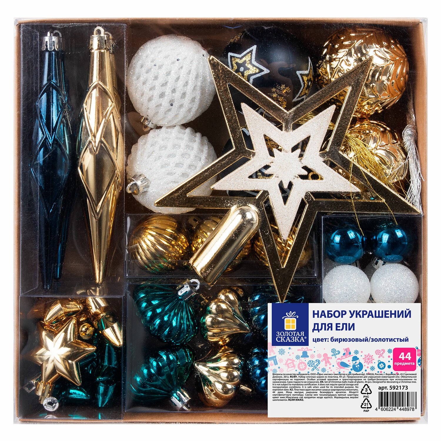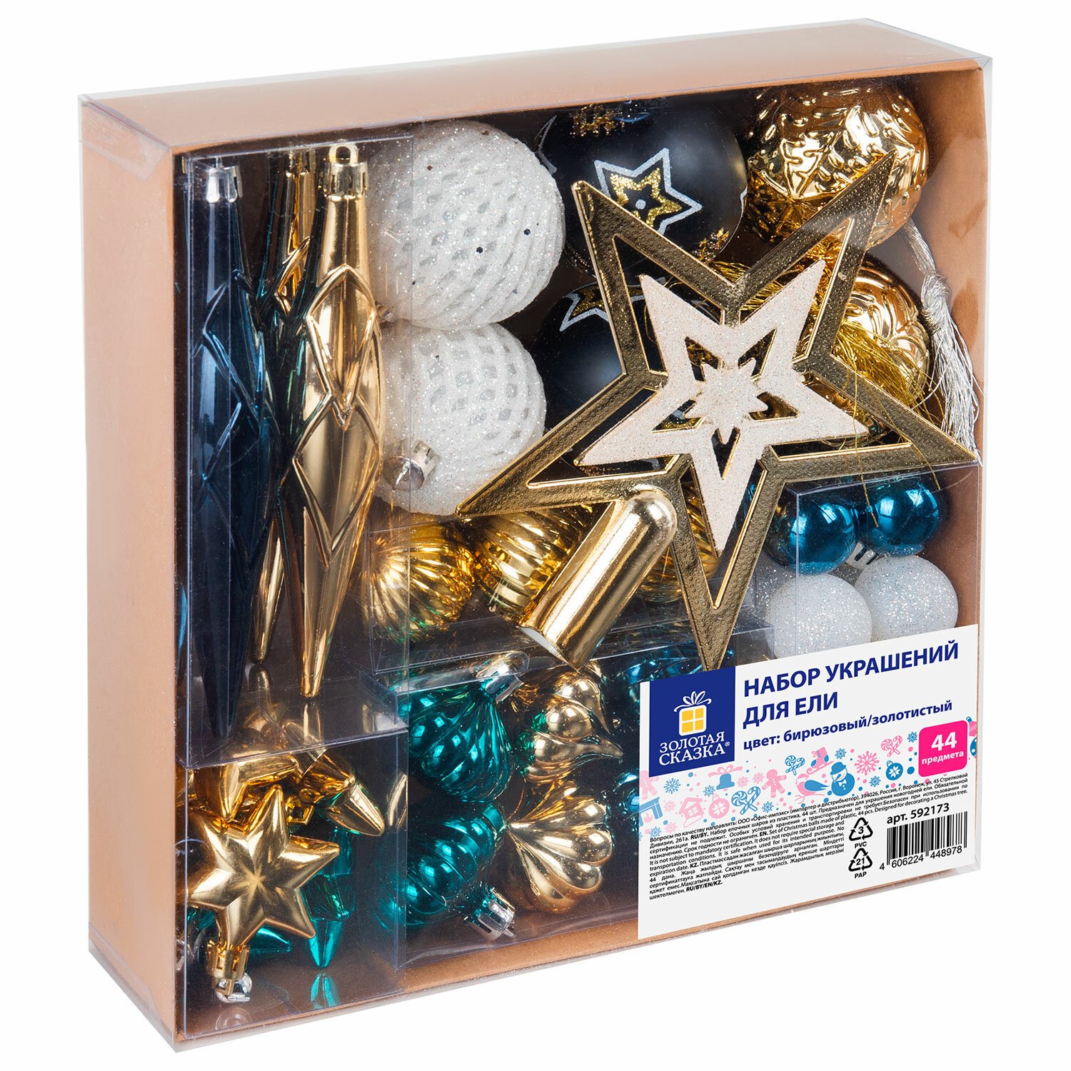 Шары ёлочные НАБОР 44 предмета, "Aurora", бирюзовый/золото, пластик, ЗОЛОТАЯ СКАЗКА, 592173