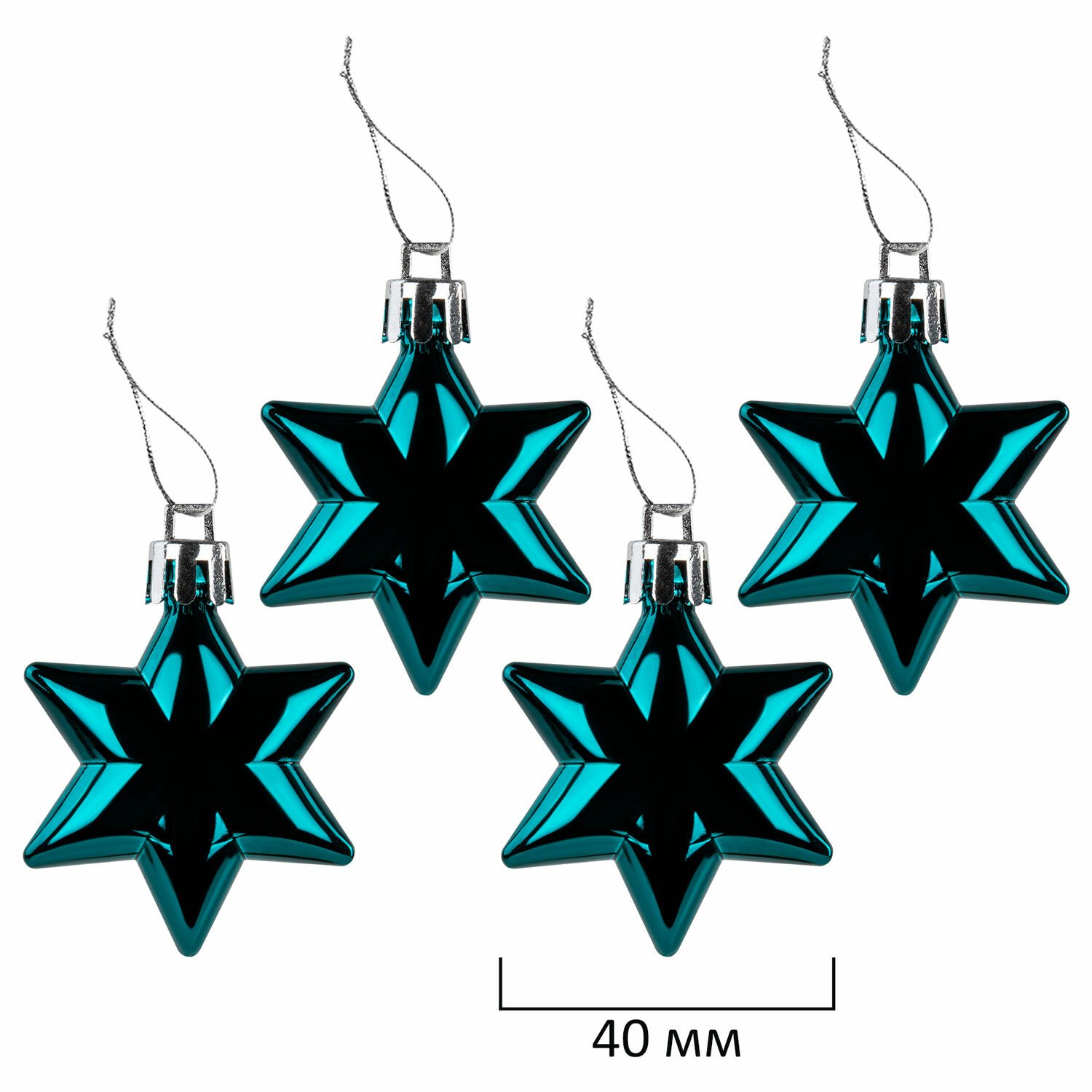 4 украшения в форме звездочек темно-синего цвета с глянцевым эффектом (размер 4 см),