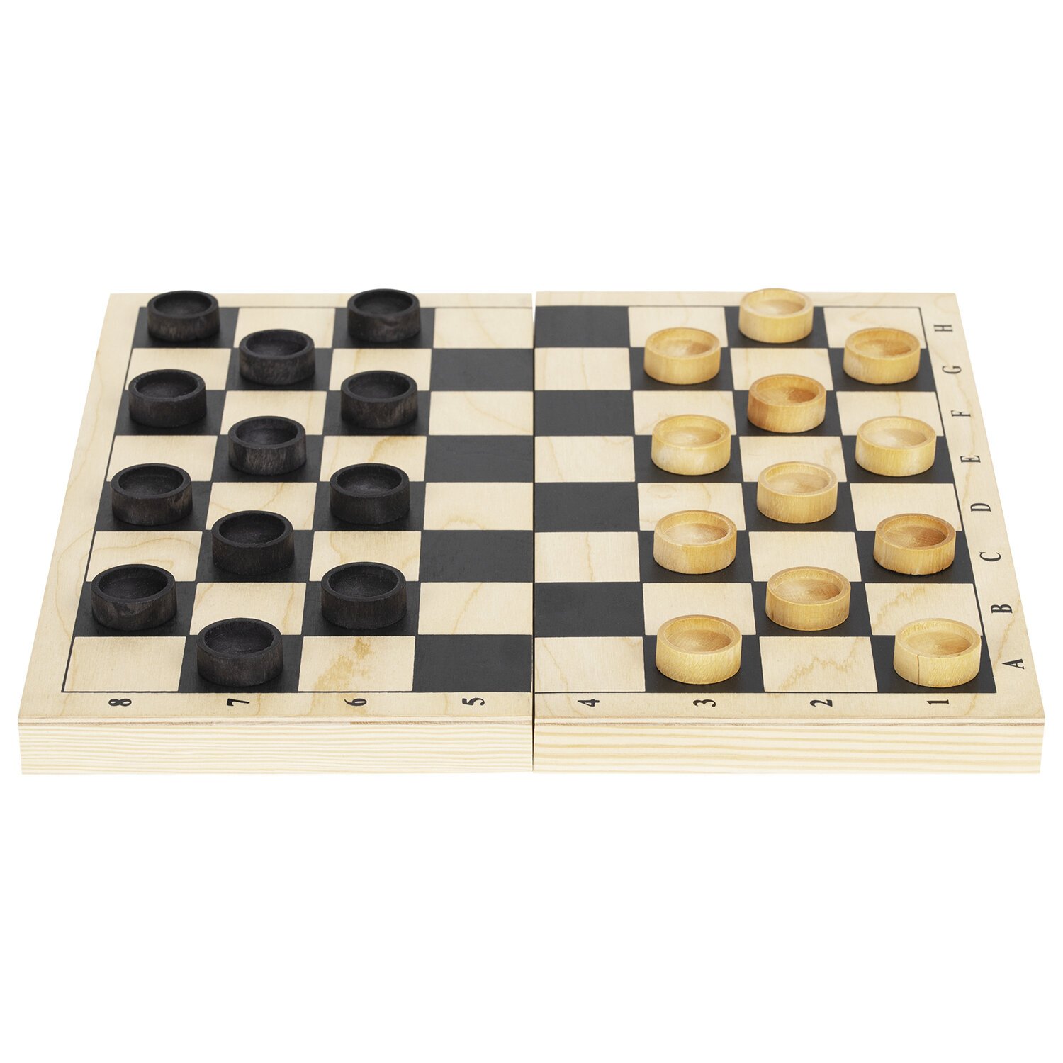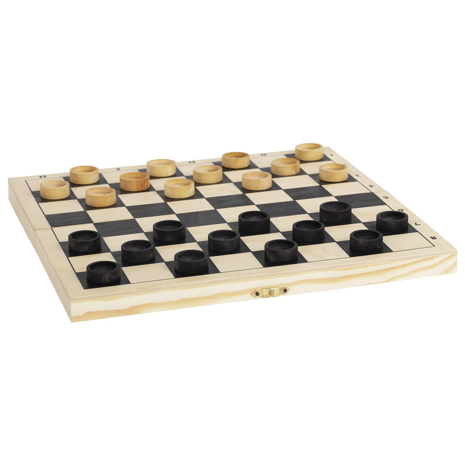 • Шашки из хвойных и лиственных пород дерева (24 штуки), 12 светлых и 12 темных, защитное лаковое покрытие.