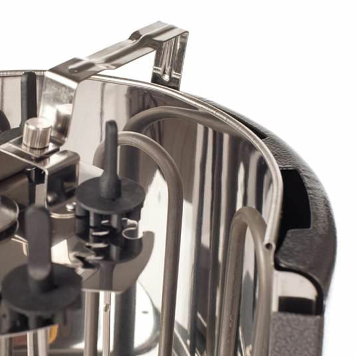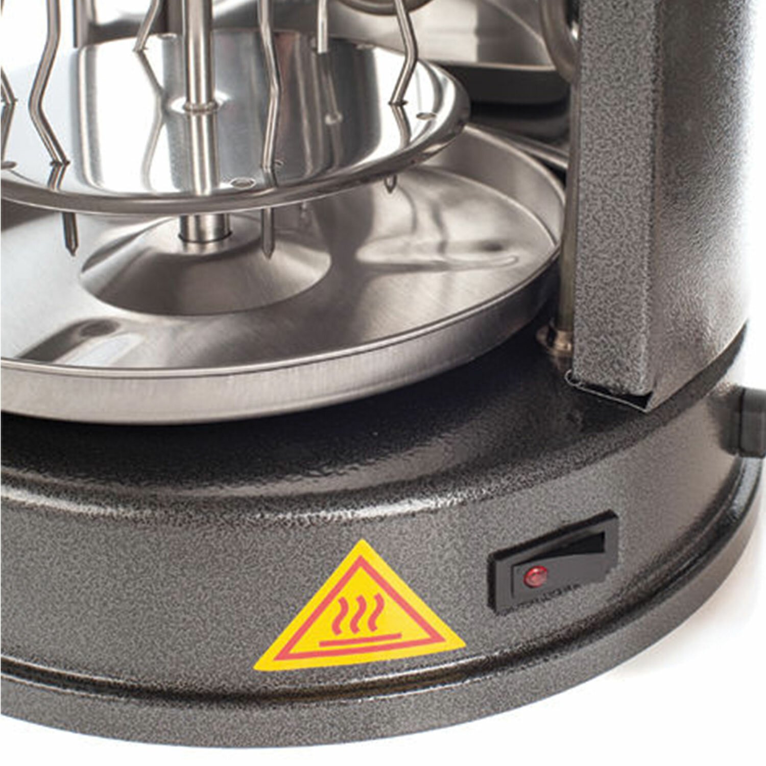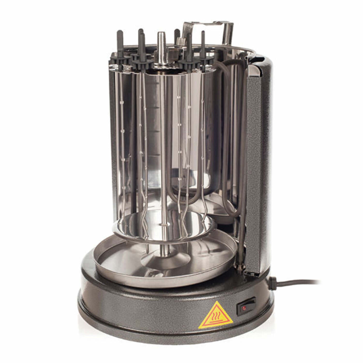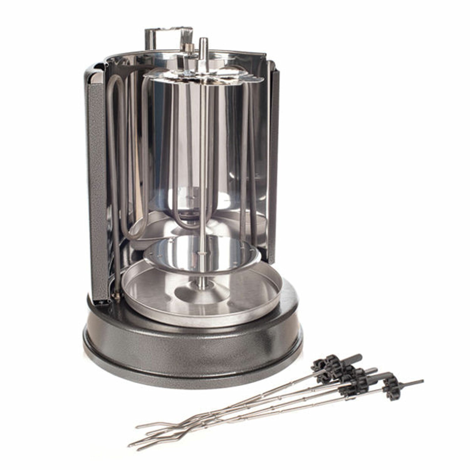 Вертикальная конструкция электрошашлычницы позволяет избежать стандартных проблем при готовке шашлыка. Например, мясо получается насыщенным, потому что сок при жарке скользит и впитывается кусочками, которые расположены ниже.