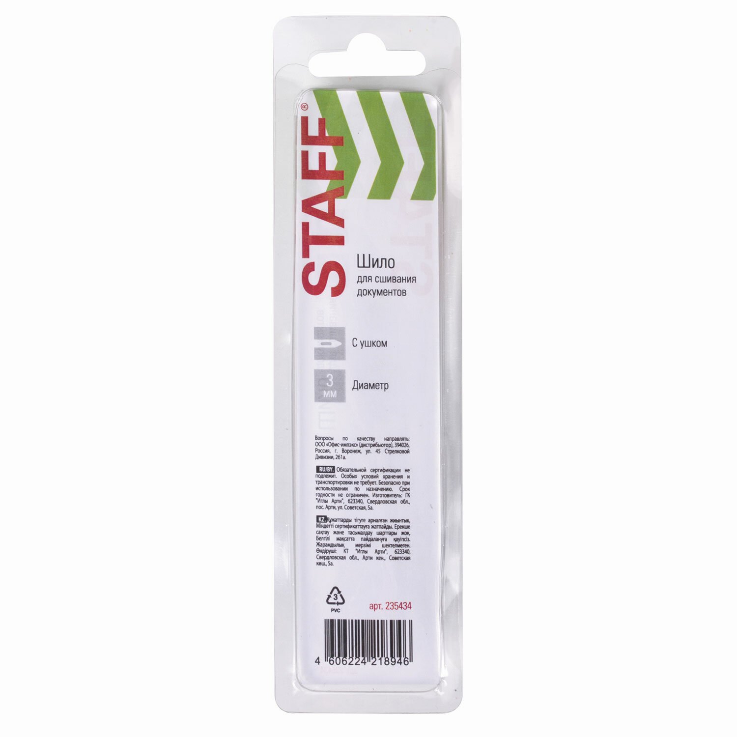 Шило канцелярское для сшивания документов, С УШКОМ, диаметр 3 мм, европодвес, STAFF, 235434