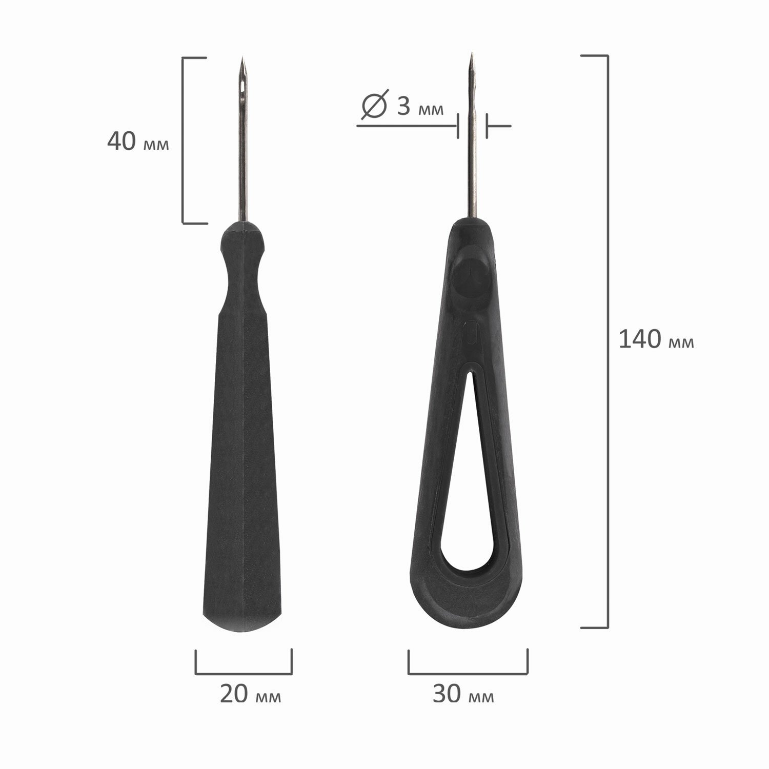 Шило канцелярское, общая длина 153 мм, диаметр иглы 3 мм, ручка черная, блистер, GLOBUS, ШБ-01
