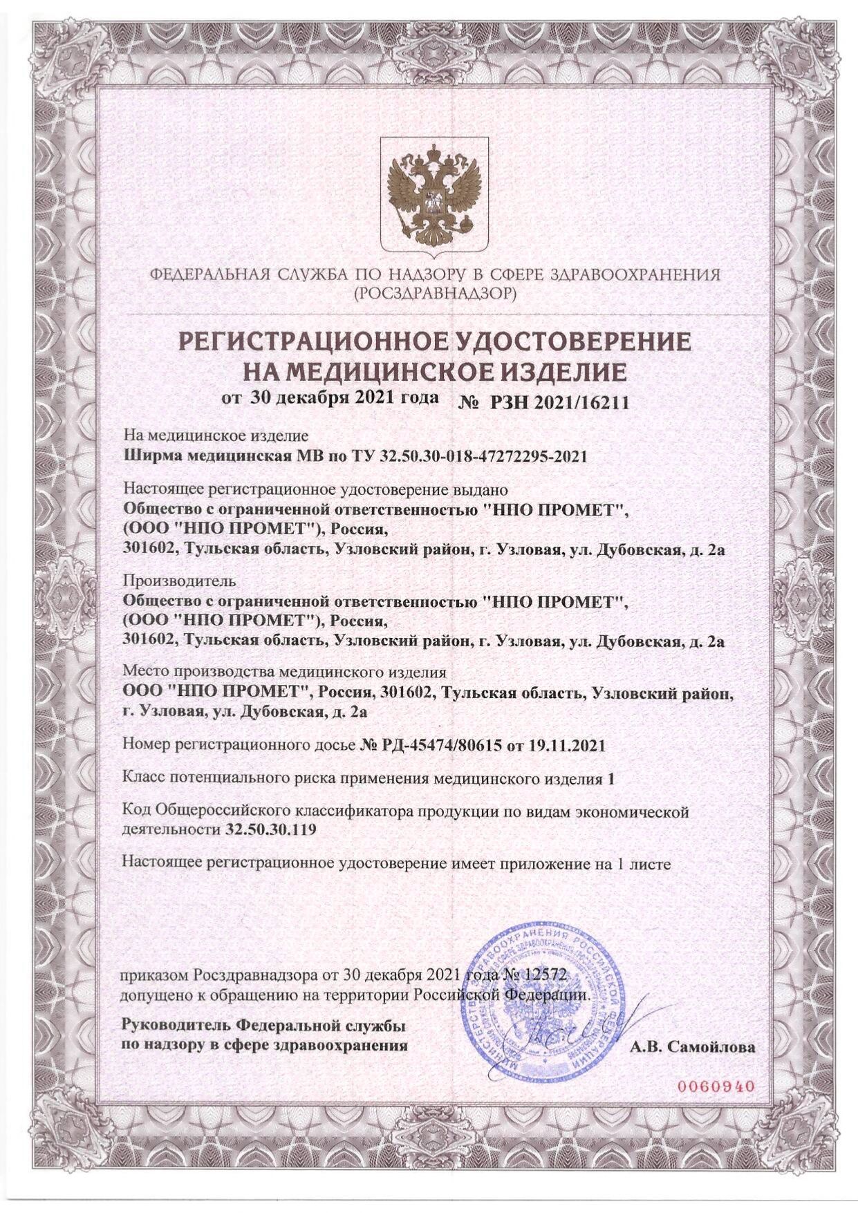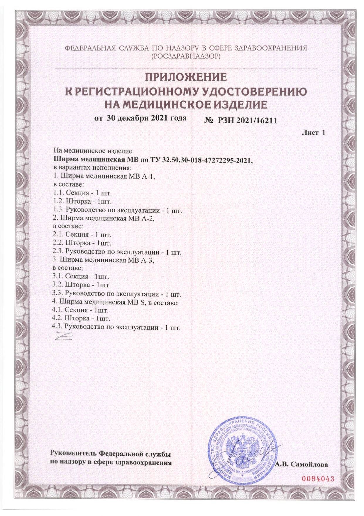 Ширма предназначена для применения в медицинских учреждениях с целью разграничения пространства при проведении лечебно-профилактических мероприятий.